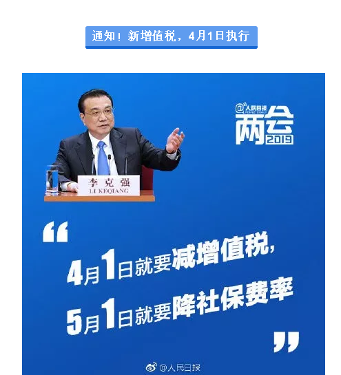 關(guān)于增值稅新稅率執(zhí)行時間,剛剛總理正式通知!增值稅稅率16%降13%,10%降9%,6%擴(kuò)抵。4月1日起正式開始執(zhí)行!以后開發(fā)票要有大變化了。