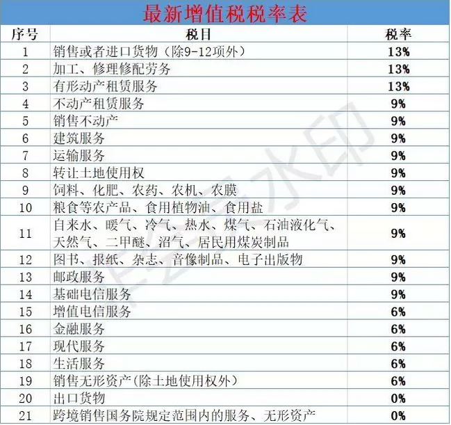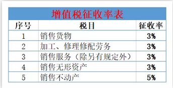 3、 銷售方想特意等到稅改確定后才開發(fā)票,怎么處理? 這要看自己議價能力,我們可以推遲付款,銷售方也會考慮資金問題 。 4、增值稅稅負(fù)降了,利潤相應(yīng)增加了,對企業(yè)真的有影響嗎? 增值稅是價外稅,不影響利潤,影響現(xiàn)金流。 5、稅改前簽的合同,等到稅改后去開票就是按9%嗎? 要看合同執(zhí)行時間,如果是稅改之后執(zhí)行的,且合同當(dāng)時也是按9%簽的合同,可以開9%的發(fā)票。 6、想問對于購銷雙方都有什么影響?建筑的總包合同呢? 對購銷雙方都有利,對制造業(yè)等少付3個點(diǎn)的增值稅稅額。老項(xiàng)目沒有影響,按簡易計稅,新項(xiàng)目,長期合同,應(yīng)考慮是補(bǔ)簽協(xié)議,作為增值稅率變更,合同金額減少3個點(diǎn)。 附2019年最新增值稅稅率表 按改革后的新稅率將《增值稅稅率、征收率、預(yù)征率表》進(jìn)行了調(diào)整。 一稅率 增值稅稅率一共有4檔:13%,9%,6%,0%。銷售交通運(yùn)輸服務(wù)、郵政、基礎(chǔ)電信、建筑、不動產(chǎn)租賃服務(wù),銷售不動產(chǎn),轉(zhuǎn)讓土地使用權(quán)以及銷售或進(jìn)口正列舉的農(nóng)產(chǎn)品等貨物(易混項(xiàng)見附件1)稅率為9%;加工修理修配勞務(wù)、有形動產(chǎn)租賃服務(wù)和進(jìn)口稅率為13%;銷售無形資產(chǎn)(除土地使用權(quán) )為6%,出口貨物稅率為0;2、其余的:貨物是13%,服務(wù)是6%。 二征收率 一共有2檔,3%和5%,一般是3%,除了財政部和國家稅務(wù)總局另有規(guī)定的。1、5%:主要有銷售不動產(chǎn),不動產(chǎn)租賃,轉(zhuǎn)讓土地使用權(quán),提供勞務(wù)派遣服務(wù)、安全保護(hù)服務(wù)選擇差額納稅的。貨物銷售里沒有5%征收率的。2、征收率絕大多數(shù)是3%,容易與5%記混的單獨(dú)記憶一下:建筑服務(wù),有形動產(chǎn)租賃,小規(guī)模納稅人提供勞務(wù)派遣服務(wù)、安全保護(hù)服務(wù)未選擇差額納稅的。3、兩個減按:個人出租住房,按照5%的征收率減按1.5%計算應(yīng)納稅額。銷售自己使用過的固定資產(chǎn)、舊貨,按照3%征收率減按2%征收。4、小規(guī)模納稅人以及選擇簡易計稅的一般納稅人(見附件2)計算稅款時使用征收率。