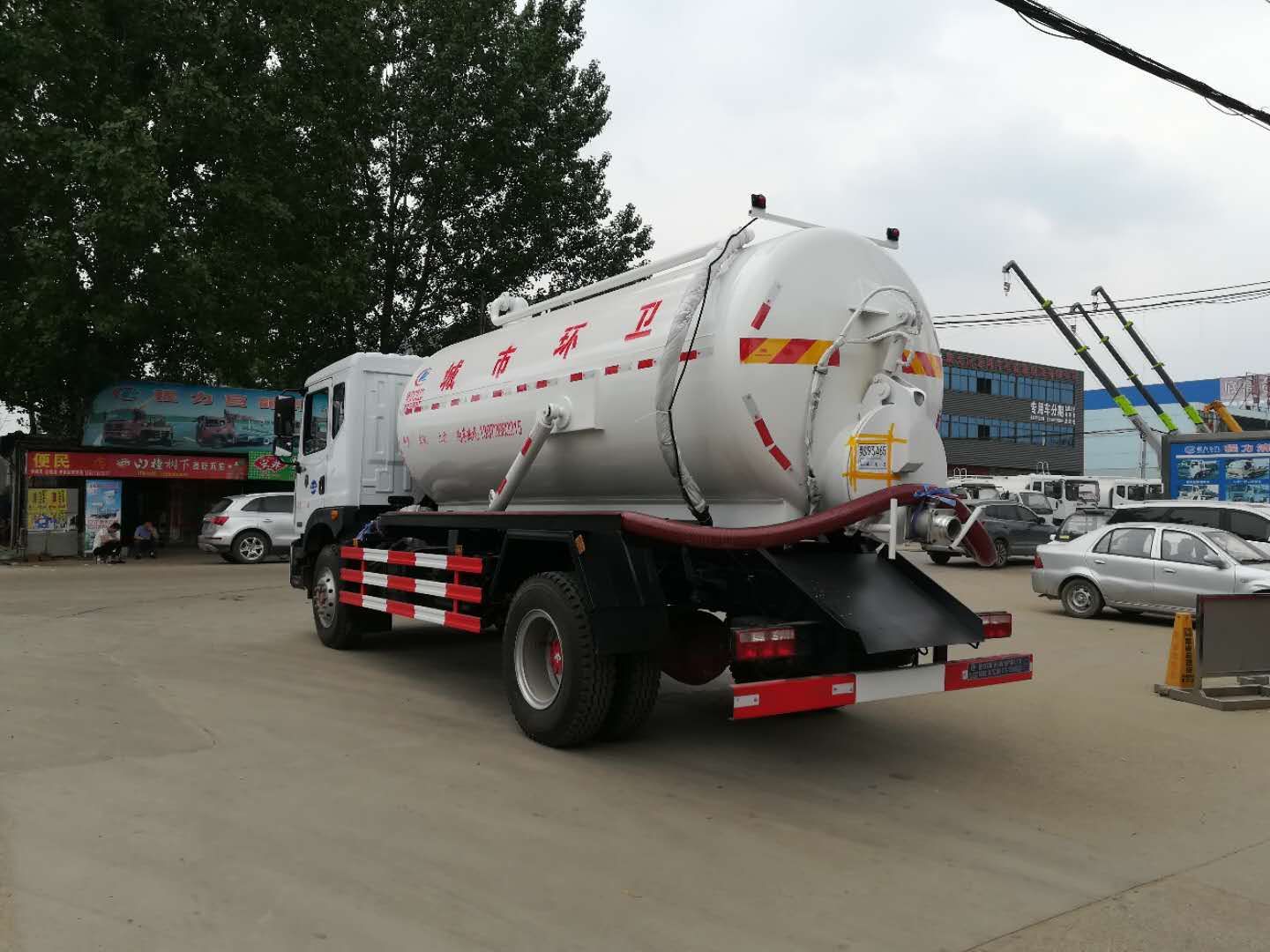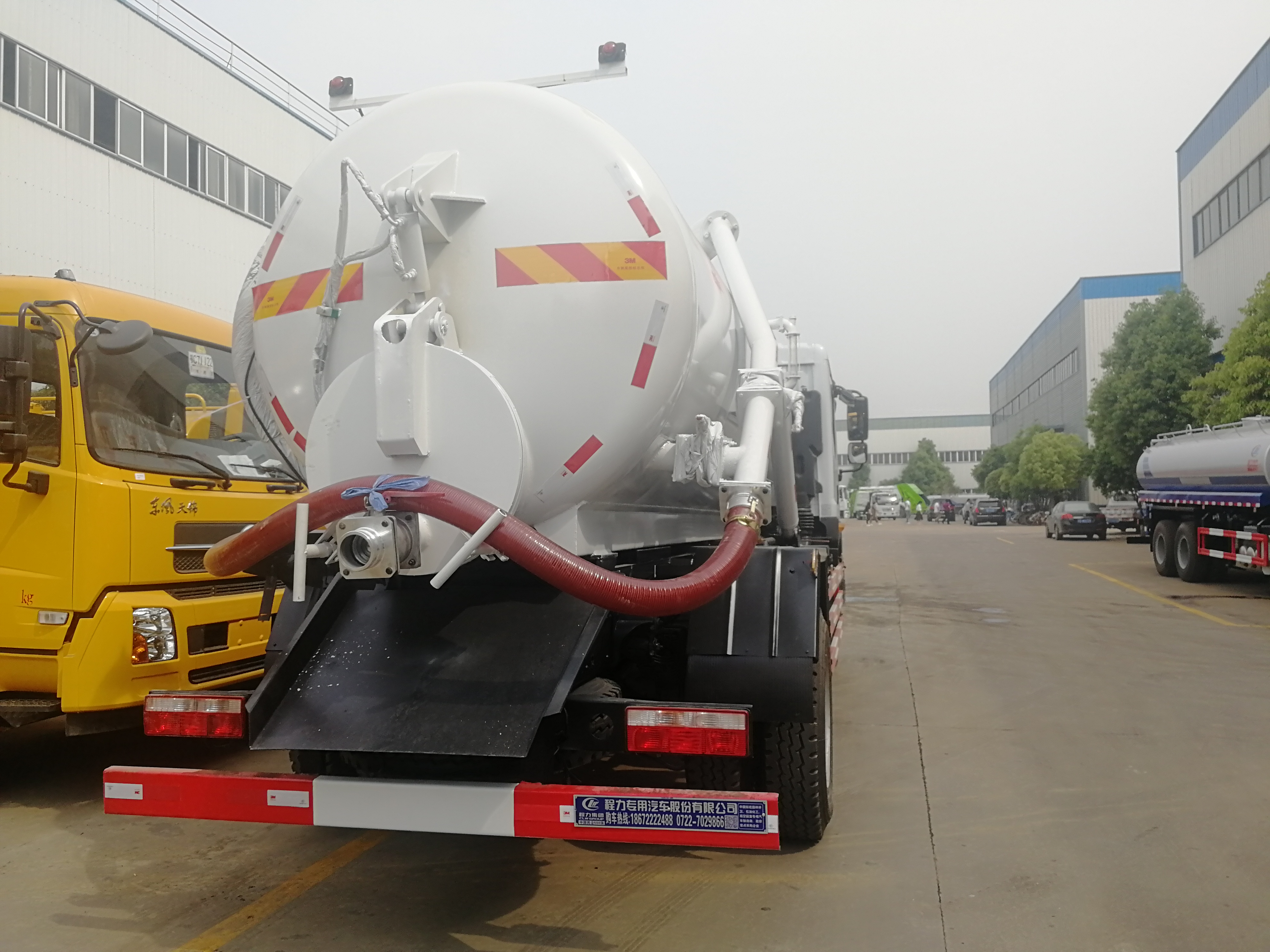 湖北程力吸污車工作原理 吸污車專用部分由取力器、傳動軸、真空吸污泵、壓力罐體、液壓部分,管網(wǎng)系統(tǒng)、真空壓力表、視糞窗、洗手裝置等組成,隨車配置大功率真空吸污泵和優(yōu)質(zhì)液壓系統(tǒng),罐體封頭一次壓鑄成型、罐體可后開、雙頂自卸。罐內(nèi)污物可通過后蓋直接傾倒,具有真空度高(比吸糞車的吸力更大)、噸位大、效率高、用途更廣泛的特點(diǎn)。 油水分離器,水氣分離器,液壓自卸裝置,專用真空吸污泵,容積壓力表,吸物導(dǎo)管,自流閥,真空罐體,連通器(視糞窗),全自動防溢閥,液壓套件。 吸污車主要用于清洗城市下水道,管道的沉積物,死角泥溝的疏通,也可用于清洗工業(yè)排液管道,壁面等,并可兼作灑水,運(yùn)水和沖公路用,緊急時(shí)可用于救火。 湖北程力東風(fēng)D9吸污車底盤配置: 采用東風(fēng)D9底盤,白色排半可前翻駕駛室,康明斯180馬力國五發(fā)動機(jī),8檔變速箱,軸距45000mm,10噸后橋,10.00R20原廠鋼絲胎,原廠abs,電動玻璃,原廠空調(diào),帶方向助力,離合助力器,氣剎制動。 湖北程力東風(fēng)D9吸污車上裝配置: 東風(fēng)D9吸污車罐體形狀為圓柱形,采用武鋼6mm厚優(yōu)質(zhì)碳鋼鋼板,罐體前部帶吸污窗,洗手裝置,舉升裝置,吸污管8米一根,罐體多種顏色選擇,其余按廠內(nèi)標(biāo)準(zhǔn)配置制作。隨車配置大功率真空吸污泵和優(yōu)質(zhì)液壓系統(tǒng),罐體封頭一次壓鑄成型、罐體可后開、雙頂自卸。罐內(nèi)污物可通過后蓋直接傾倒,具有真空度高(比吸糞車的吸力更大)、噸位大、效率高、用途更廣泛的特點(diǎn)。(垂直吸程:≥8 m,工作壓力:8500Pa,理論抽速:120L/S,軸功功率:≤13kw,進(jìn)排氣口徑:50mm,抽滿罐時(shí)間:<5 min,排滿罐時(shí)間:<4min。吸污車采用大功率真空泵,一次壓鑄成型的封頭-,加厚的抗壓罐體,雙頂液壓系統(tǒng),是比吸糞車功能更強(qiáng)大的車型。下面是山東濰坊用戶再次到湖北程力訂購12方吸污車發(fā)車圖片: |