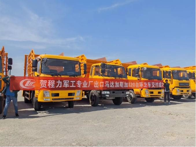 湖北程力汽車120輛擺臂式垃圾車出口馬達(dá)加斯加,為保護綠色地球打贏藍(lán)天保衛(wèi)戰(zhàn)貢獻中國力量