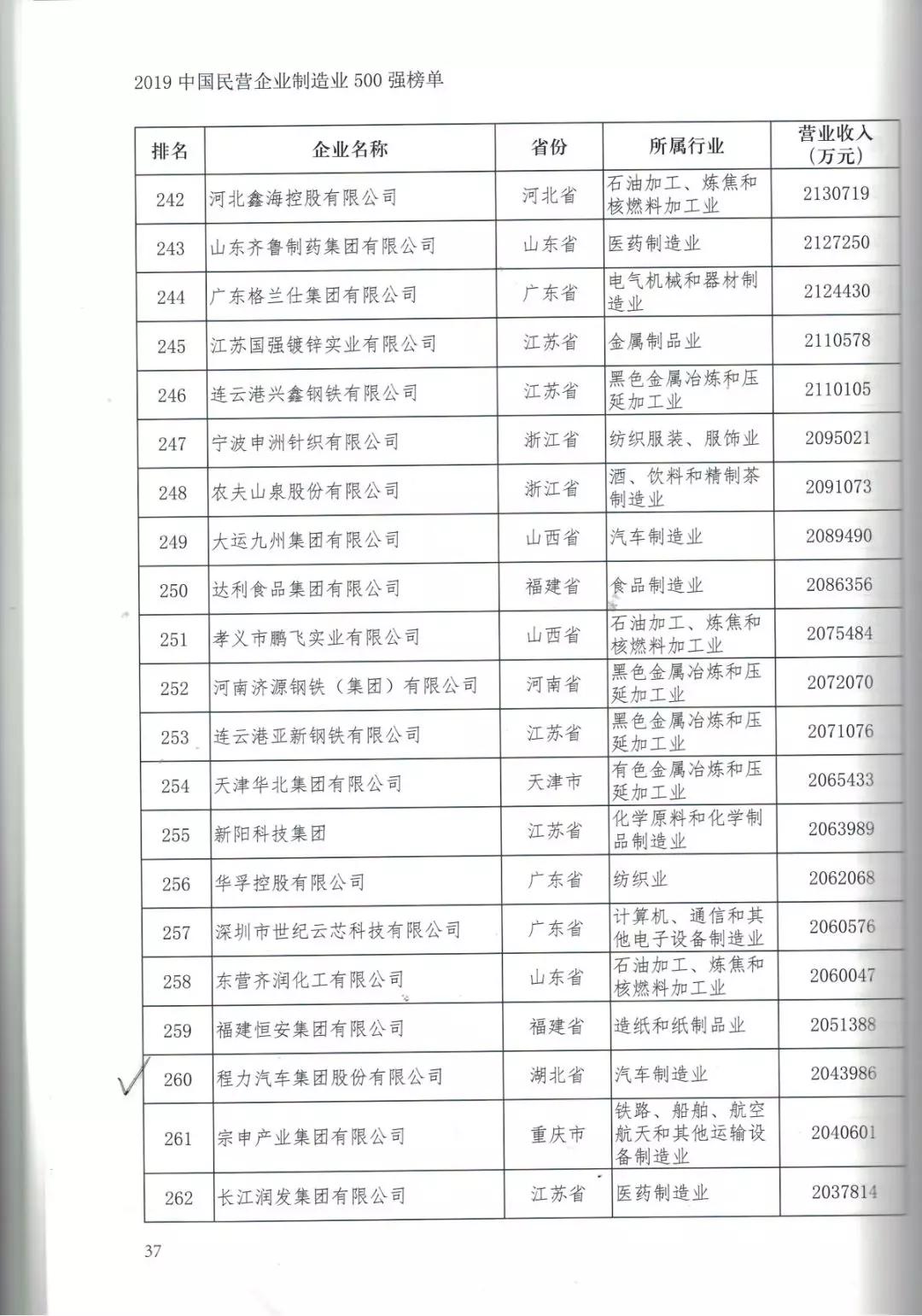 湖北程力汽車集團入選2019年中國民企500強及中國民企制造業(yè)500強榮譽榜單
