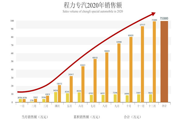 湖北程力公司在2020年初制定的專汽產(chǎn)值原本是完成70億目標,但隨著一場突如其來的疫情災害影響,直接停產(chǎn)一個半月,耽誤產(chǎn)值13億元;對此,以程阿羅總經(jīng)理為首的高層團隊精準研判科學施策,面對疫情不畏困難,將沖刺目標調(diào)高到75億;一手抓疫情防控一手抓復工復產(chǎn),積極應對逆勢而上,大膽創(chuàng)新及時推出高端負壓救護車、醫(yī)療廢棄物轉(zhuǎn)運車、疫情消毒車、應急搶險車、核酸取樣檢測車等適銷對路的緊缺產(chǎn)品,馳援全國及國際疫情防控第一線,與病毒擴散搶時間、奪戰(zhàn)場,把耽誤的時間補回來,把失去的市場占領(lǐng)回來。 2020年三月份以來,湖北程力專汽及應急產(chǎn)品的生產(chǎn)銷售一直持續(xù)快速的攀升,平均增長速度超過了20%,遙遙領(lǐng)先于同行業(yè)的其他生產(chǎn)廠家,高于歷史同期增長水平,打了一個漂亮的翻身仗,截止12月25日上午10:38分,專汽產(chǎn)值提前6天順利完成75.58億,交出了一份令人滿意的答卷。