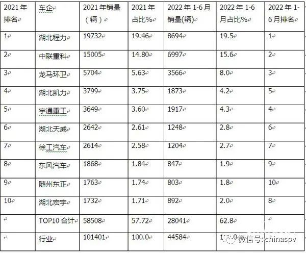 2022年上半年環(huán)衛(wèi)車市場趨勢:湖北程力、福建龍馬、中聯重科居前三,新能源專用汽車表現搶眼