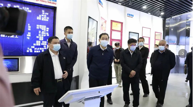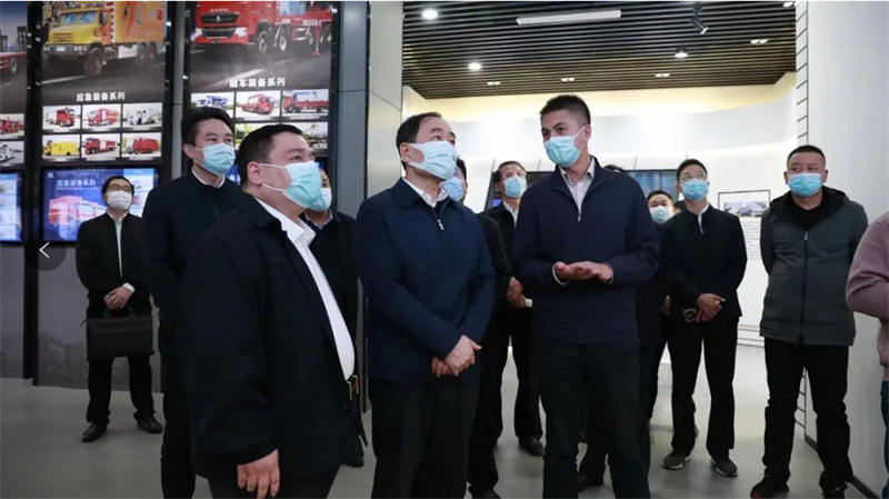 右上圖:湖北省副省長趙海山(左二)、隨州市政府副市長黃繼軍(左三)與程力汽車集團董事長程阿羅(左一)等負責人參觀程力專汽5G數(shù)字云展廳。 程力集團高質(zhì)量發(fā)展的重大舉措引起了湖北省領導的高度重視,近日,趙海山副省長一行領導,在隨州市副市長黃繼軍、曾都區(qū)區(qū)委姜晧,以及隨州市、曾都區(qū)政府職能部門負責人的陪同下,赴程力汽車集團進行專題調(diào)研,他首先參觀了程力汽車集團5G數(shù)字云展廳,對程力集團跨越式發(fā)展與對地方經(jīng)濟建設的貢獻,表示了充分肯定;鼓勵企業(yè)以新技術(shù)、新材料、新工藝為重要抓手,以研發(fā)生產(chǎn)氫燃料動力整車和新能源商用車暨應急裝備產(chǎn)品轉(zhuǎn)型升級為突破口,一心一意謀發(fā)展,堅定不移地走科技創(chuàng)新和綠色環(huán)保可持續(xù)發(fā)展之路。