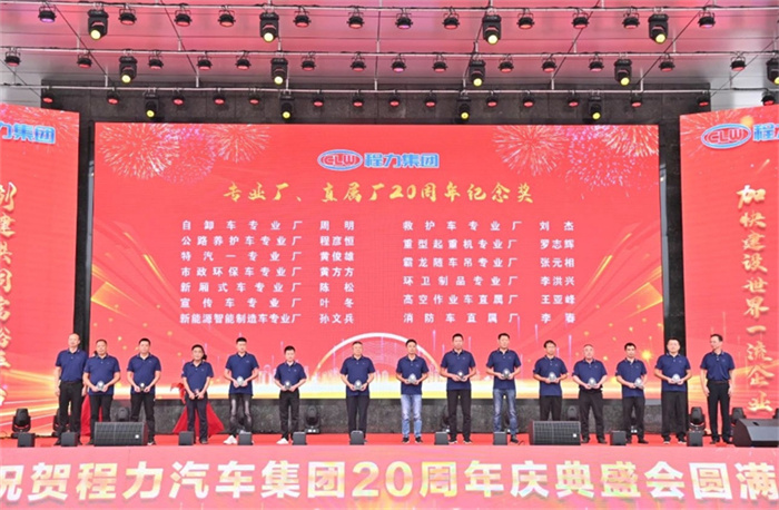 篇章一:9月15日上午之“程力二十年,攜手向未來”慶典表彰大會 ![]() ![]() “鑄專汽領(lǐng)軍品牌,建世界一流企業(yè)”;“程力二十年,攜手向未來”,2024年9月15日上午,金秋時(shí)節(jié)的炎帝神農(nóng)故里隨州,在程力(曾都)汽車工業(yè)園數(shù)字化智慧工廠文化廣場,陽光明媚碩果累累,鮮花綻放丹桂飄香;來自隨州市、區(qū)的領(lǐng)導(dǎo)嘉賓,全國各大主機(jī)廠、汽車零部件上下游供貨商、售后服務(wù)站,以及程力直營店、市外聯(lián)營單位的代表,以及程力各生產(chǎn)經(jīng)營單位的負(fù)責(zé)人、集團(tuán)公司15年至20年工齡忠誠敬業(yè)員工、光榮退休的元老,共1000余人,歡聚一堂喜氣洋洋,共同參加了集團(tuán)公司20周年盛大慶典,攜手同行的合作伙伴和友商,紛紛發(fā)來了賀信、賀函,先后發(fā)來賀信、賀電或祝福視頻。 程主席致詞贊揚(yáng)道:程力人二十載風(fēng)雨兼程,二十載砥礪奮進(jìn),全體員工敢于創(chuàng)新勇立潮頭,心無旁騖專注汽車制造,不忘初心、肩負(fù)使命、奮斗不止,程力人是“程力精神”的創(chuàng)造者、弘揚(yáng)者,是公司發(fā)展的建設(shè)者和主人翁;二十年來,程力從無到有、從弱到強(qiáng),這一發(fā)展壯大的絢麗篇章,記載了程力人為中國專汽之都增光添彩的奮斗歷程;在20年的開拓征程中,程力人群策群力、攻堅(jiān)克難,打贏了一個(gè)又一個(gè)攻堅(jiān)戰(zhàn),在汽車制造和應(yīng)急裝備領(lǐng)域,深耕沃土,實(shí)現(xiàn)了跨越式的高速增長,奠定了專汽領(lǐng)軍地位,豎立了行業(yè)豐碑,程力品牌馳名中外、享譽(yù)世界,老一輩程力人為此付出了卓越的貢獻(xiàn)。