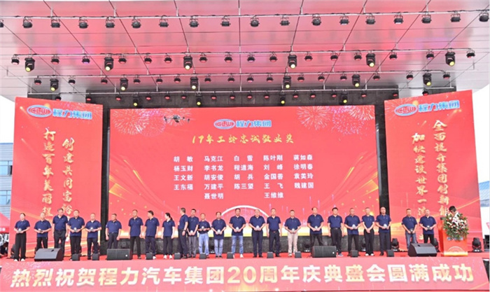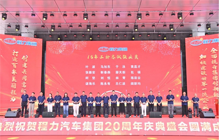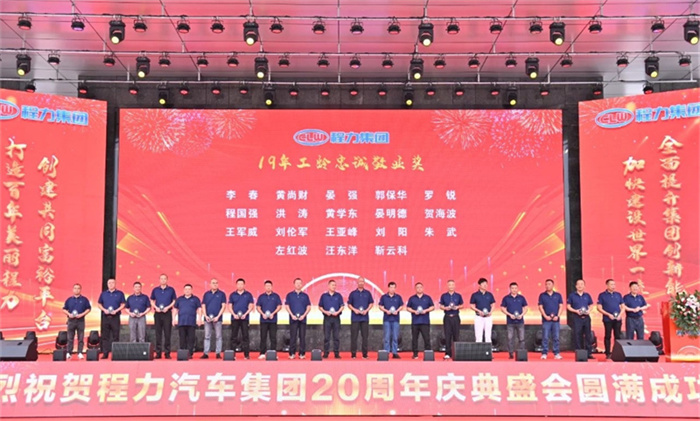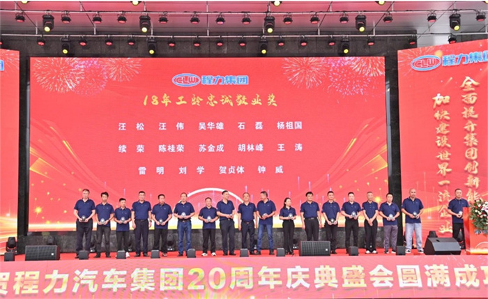 北汽福田汽車股份有限公司Y事業(yè)部總裁宋洋先生在致辭中,也全面回顧了福田與程力緊密合作的深厚友誼,對程力20年來的發(fā)展成就表示充分的肯定和由衷的贊許。北汽福田汽車股份有限公司助力程力在小卡、微卡實(shí)現(xiàn)行業(yè)引領(lǐng),打造了標(biāo)桿市場,市場份額達(dá)到70%,推動了細(xì)分市場的發(fā)展與創(chuàng)新;新冠疫情期間,江鈴汽車股份有限公司鼎力馳援、力保醫(yī)療救護(hù)車交付7000余臺,收到了國務(wù)院來信表揚(yáng)。 江鈴汽車股份有限公司副總裁兼江鈴汽車銷售有限公司總經(jīng)理劉讓坡先生在致辭中,盤點(diǎn)了江鈴與程力兄弟般情誼的合作佳話。 除上述主機(jī)廠代表發(fā)言外,程力與一汽解放、東風(fēng)商用車、安徽江淮、長安凱程、南京依維柯、陜汽集團(tuán)、東風(fēng)隨專、上汽大通、成都壹為、三環(huán)汽車等合作單位,先后聯(lián)袂打造了航天醫(yī)監(jiān)醫(yī)保車、應(yīng)急救險(xiǎn)車等眾多的成功合作案例,正是各位底盤合作單位的鼎力相助,我們將天馬行空的設(shè)計(jì)理念轉(zhuǎn)化為馳騁路面的各類專用車輛,讓每一款改裝作品都閃耀著獨(dú)特的光芒,成為行業(yè)內(nèi)的佼佼者。 襄陽達(dá)安汽車檢測中心有限公司副總經(jīng)理齊剛先生致辭。程力公司自建廠以來,與襄陽達(dá)安檢測中心展開合作。作為國家級的檢測機(jī)構(gòu),襄陽達(dá)安在公告、環(huán)保、營運(yùn)等檢測認(rèn)證,以及檢測場地、專家團(tuán)隊(duì)等諸多方面,都給予了我們強(qiáng)有力的支持,特別是今年襄陽達(dá)安隨州專用汽車和應(yīng)急裝備試驗(yàn)場投入運(yùn)營,更是助力隨州汽車企業(yè)的發(fā)展。程力一路走來,離不開襄陽達(dá)安的支持和幫助,在此對襄陽達(dá)安檢測中心表示衷心的感謝! 賡即,集團(tuán)公司董事局主席程道國、董事長程阿羅向來自全國參加慶賀的主機(jī)廠代表贈予了程力20年“合作紀(jì)念獎”獎?wù)隆?br /> 程力汽車集團(tuán)副總經(jīng)理倪文進(jìn)(左)向檢測機(jī)構(gòu)襄陽達(dá)安汽車檢測中心有限公司、中汽研汽車檢驗(yàn)中心(武漢)有限公司代表,贈予了程力20年“合作紀(jì)念獎”獎?wù)隆?br /> 民族品牌,唱響世界。程力不僅是中國的程力,也是世界的程力;程力集團(tuán)在湖北省建有五大核心制造基地,在立足本地的同時(shí),我們用市外聯(lián)營模式走向全國走向世界,已成為行業(yè)的楷模和榜樣。這一成就典范的背后,離不開程力市外聯(lián)營單位的突出貢獻(xiàn),我們的市外聯(lián)營合作伙伴,憑借出色的業(yè)務(wù)成果、創(chuàng)新的合作模式,以及深遠(yuǎn)的對外影響力,在眾多單位中脫穎而出,程力集團(tuán)總經(jīng)理朱武(右)向全國6家市外聯(lián)營單位的代表頒發(fā)了“程力20周年紀(jì)念獎”獎?wù)隆?br /> 程力集團(tuán)銷售總公司常務(wù)副總經(jīng)理袁美玲(左)向全國共9家服務(wù)站及直營店代表頒發(fā)了“程力20年紀(jì)念獎”獎?wù)。這些在奮戰(zhàn)銷售第一線的直營店,以及售后領(lǐng)域默默耕耘的服務(wù)站,他們用不懈的努力和專業(yè)的態(tài)度贏得了口碑,他們辛勤的付出,為程力產(chǎn)品的銷售與服務(wù)做出了巨大貢獻(xiàn)。 二十年比肩同行,二十年披星戴月,二十年同舟共濟(jì),我們更要感恩程力專業(yè)廠、直屬廠的辛勤付出和默默奉獻(xiàn)。程力集團(tuán)黨委書記袁昌才、總經(jīng)理朱武,為默默耕耘8年以上的生產(chǎn)經(jīng)營單位共負(fù)責(zé)人頒發(fā)了“程力20周年紀(jì)念獎”獎?wù)隆?br /> 集團(tuán)公司的發(fā)展離不開最早的一批創(chuàng)業(yè)者,雖然他們已經(jīng)退休,但仍然無時(shí)無刻關(guān)注著集團(tuán)的發(fā)展。他們在公司工作都超過15年,為集團(tuán)的發(fā)展作出了巨大的貢獻(xiàn),集團(tuán)董事局常務(wù)副主席程國強(qiáng)為光榮退休忠誠敬業(yè)獎老員工頒發(fā)了獎?wù)?/span>。 當(dāng)我們攜起手來,總有溫暖的臂膀在支撐;一代一代程力人薪火相傳,兢兢業(yè)業(yè),開拓創(chuàng)新,奮發(fā)圖強(qiáng),鑄就了今日輝煌,程力汽車集團(tuán)公司為15年至18年工齡獲得忠頒發(fā)了誠敬業(yè)獎。 集團(tuán)董事局常務(wù)副主席程國強(qiáng)、集團(tuán)董事局副主席郭傳文、集團(tuán)董事局副主席黃尚財(cái)、集團(tuán)董事局委員廖明洲、集團(tuán)董事局辦公室主任楊祖國為獲獎人員頒獎,并合影留念。 集團(tuán)董事局主席程道國、集團(tuán)董事長程阿羅為19年及20年工齡的忠誠敬業(yè)獎獲獎?wù)哳C獎,并合影留念。頒獎現(xiàn)場一陣陣熱烈的掌聲,表達(dá)了對程力忠誠敬業(yè)的員工們表示衷心的感謝,正是有了廣大員工在公司忠誠堅(jiān)守,程力才有一代一代的賡續(xù)傳承和輝煌成就! 二十年來,程力堅(jiān)持創(chuàng)新驅(qū)動,不斷推進(jìn)技術(shù)進(jìn)步和產(chǎn)品升級。從最初的單一產(chǎn)品,到如今涵蓋各類專用汽車、新能源汽車及關(guān)鍵零部件的完整產(chǎn)業(yè)鏈,程力汽車集團(tuán)已成為國內(nèi)領(lǐng)先的綜合性汽車產(chǎn)業(yè)集團(tuán)。為更好詮釋企業(yè)文化、企業(yè)發(fā)展方向,站在新的歷史起點(diǎn)上,讓企業(yè)品牌享譽(yù)世界,我們將發(fā)布程力集團(tuán)的國際化