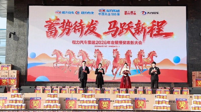 蓄勢(shì)待發(fā),馬躍新程----程力汽車集團(tuán)股份有限公司2026年會(huì)暨表彰大會(huì)圓滿舉行 “駿馬馳騁勇爭先,蓄勢(shì)待發(fā)啟新程”,2026年新春將至,程力汽車集團(tuán)股份有限公司,于2月13日上午,在隨州總部程力大舞臺(tái)文化廣場,以蓄勢(shì)待發(fā)馬躍新程為主題,隆重召開年會(huì)暨表彰大會(huì),集團(tuán)公司2000余名獲獎(jiǎng)生產(chǎn)經(jīng)營單位負(fù)責(zé)人、先進(jìn)工作者、示范標(biāo)兵、金牌跟單員、十大銷售體系團(tuán)隊(duì)獲獎(jiǎng)嘉賓、先鋒黨員、優(yōu)秀黨支部,以及員工代表歡聚一堂,回望耕耘、致敬榜樣、擘畫未來,共赴嶄新征程。