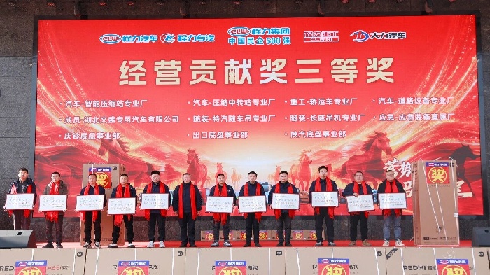 董事局主席程道國先生作總結(jié)講話,程主席回顧了程力發(fā)展征程,寄語全體同仁乘勢(shì)而上、策馬揚(yáng)鞭,以更昂揚(yáng)斗志深耕主業(yè)、開拓創(chuàng)新,共筑程力發(fā)展新高度。講話期間,二等獎(jiǎng)、一等獎(jiǎng)抽獎(jiǎng)相繼揭曉,米家滾筒洗衣機(jī)等大獎(jiǎng)花落名家,將氛圍推向頂點(diǎn)。 歲序更新,華章再啟,展望2026年,我們程力人初心如磐,奮楫篤行;馬躍新程,未來可期。本次大會(huì)既是總結(jié)表彰的榮耀盛典,更是啟航新局的動(dòng)員令。全體程力人將以榜樣為力量,以戰(zhàn)略為指引,凝心聚力、勇毅前行,以實(shí)干書寫2026新篇章,共赴程力集團(tuán)更輝煌的未來! 延展鏈接:2025年捷報(bào)頻傳碩果累累! 程力汽車集團(tuán)2025年專汽單項(xiàng)產(chǎn)值首次突破100億元大關(guān),出口創(chuàng)匯1億美金,上繳稅收超過一億元,在中國民企500強(qiáng)排名第320位,綜合實(shí)力顯著增強(qiáng)! 同時(shí),程力汽車集團(tuán)旗下子公司程力專用汽車股份有限公司“程力威”商標(biāo)品牌價(jià)值,被湖北省政府、省發(fā)改委、省經(jīng)信廳認(rèn)定全國首家專汽品牌價(jià)值達(dá)12.38億元;“集團(tuán)還同時(shí)擁有“大力”中國馳名商標(biāo)和“程力”湖北省優(yōu)勢(shì)商標(biāo)等知識(shí)產(chǎn)權(quán)無形資產(chǎn),知名品牌覆蓋了汽車整車、底盤、新能源車、汽車零部件等全鏈條關(guān)聯(lián)產(chǎn)業(yè)。 |