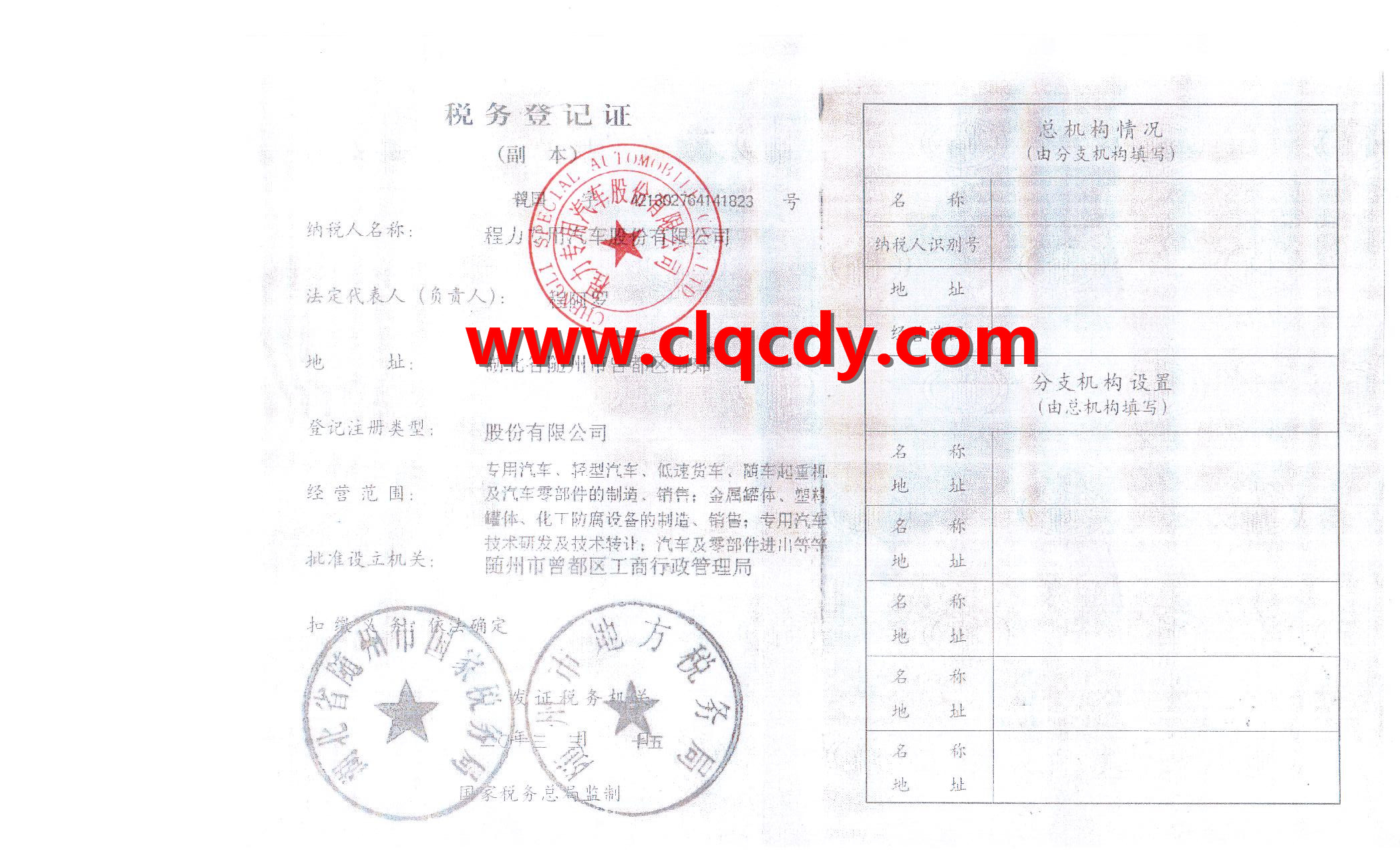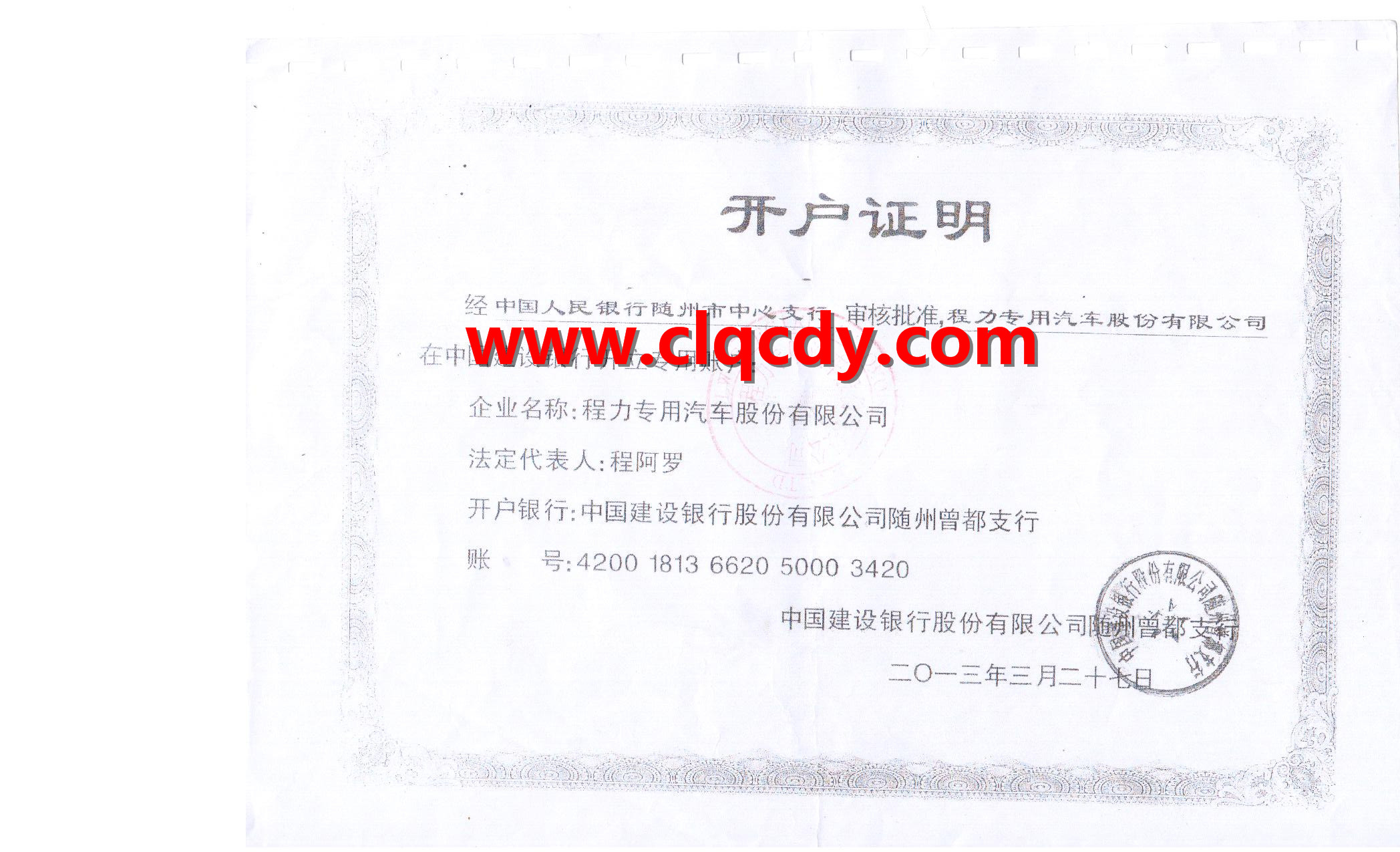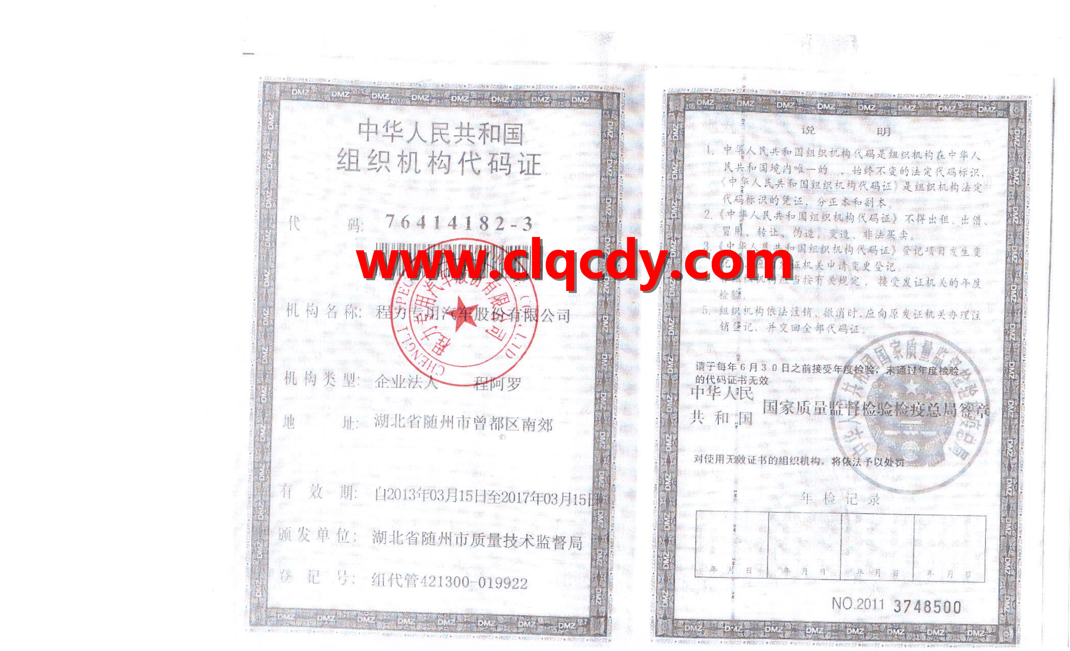 湖北程力營業(yè)執(zhí)照、組織機構(gòu)代碼、稅務(wù)登記證、開戶證明。 |