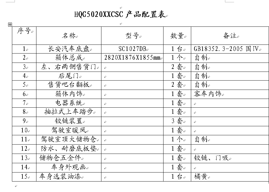 1.車廂頂部封閉選裝通風(fēng)窗時,高2590mm;選裝頂置空調(diào)時,高2890 mm.2左右兩側(cè)及后部均可選裝led屏、廣告滾軸燈箱、玻璃窗或上掀門。3.該車前部頂端兩側(cè)裝有喇叭,可進行聲音宣傳.4.該車裙邊工具箱艙門可選裝.5.側(cè)部和后下部防護裝置為鋼板整體式側(cè)圍防護結(jié)構(gòu),離地高度300mm,側(cè)部和后下部防護裝置材料材質(zhì)為Q235A.發(fā)動機型號/最大凈功率(kw)分別為:JL466Q1/46.56;6.可以選裝不同車體顏色和外觀貼畫.