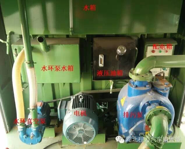 湖北程力污水處理車主要由:夾心取力器、排污泵(出口)、水環(huán)真空泵、齒輪泵、多路閥、柱塞馬達、圓筒濾網、無軸螺旋、污水分離箱、攔截箱、防溢閥、視糞管、電機、配電柜(配有漏電保護器、相序保護繼電器)、LED宣傳屏等組合而成。