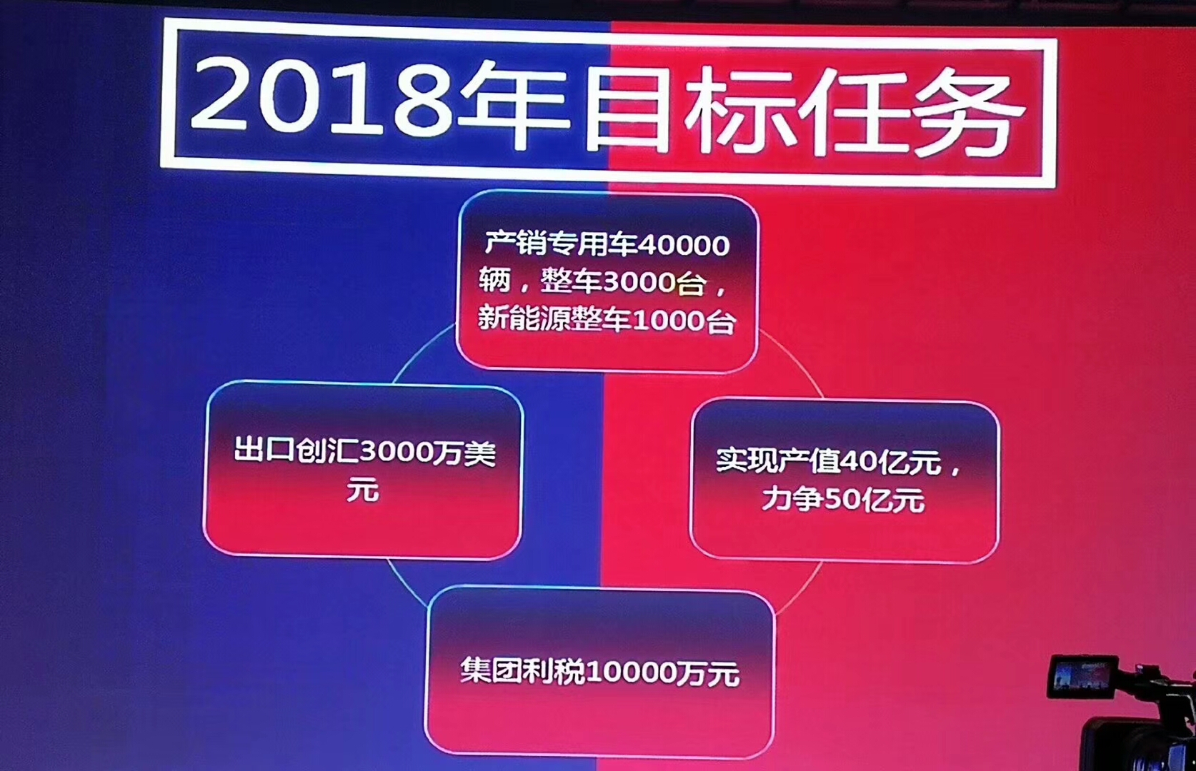 四、2018年目標(biāo)任務(wù):產(chǎn)銷專用車40000輛,整車3000臺(tái),新能源整車1000臺(tái),實(shí)現(xiàn)產(chǎn)值40億元,力爭(zhēng)50億元 |