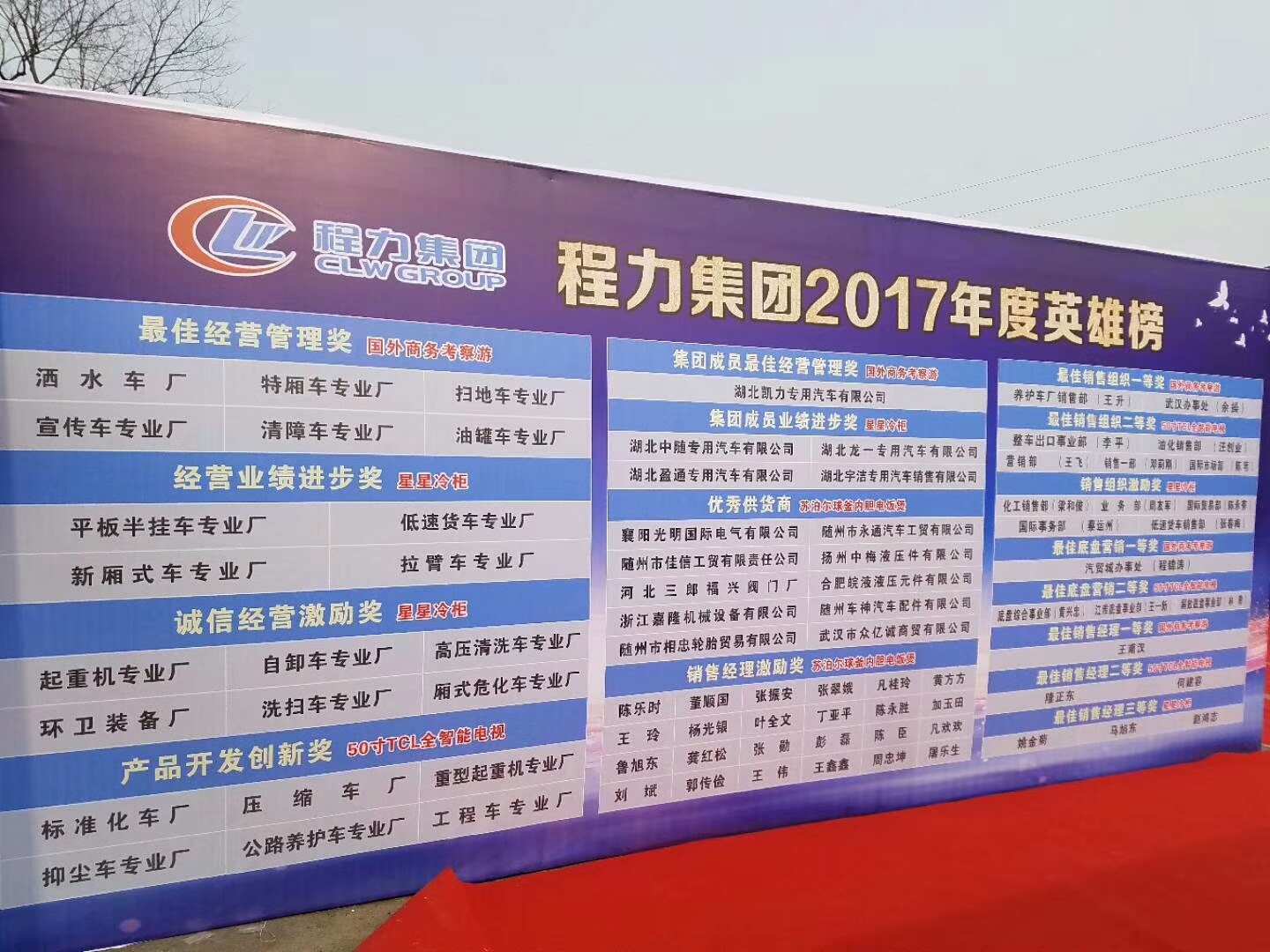 創(chuàng)新引領(lǐng)新作為,高質(zhì)促進(jìn)新發(fā)展-湖北程力汽車集團(tuán)2017年企業(yè)工作報(bào)告 今天,湖北程力汽車公司的新春年會(huì),圓滿召開! 一、2017年湖北程力汽車公司取得的成績(jī),生產(chǎn)各類專用汽車產(chǎn)值36億元,創(chuàng)造年產(chǎn)值增長(zhǎng)10億的奇跡,回顧2017年展望2018年在新的一年里目標(biāo)是突破40億元邁向50億元。 自主創(chuàng)新開發(fā)新產(chǎn)品:環(huán)境監(jiān)測(cè)車、多功能抑塵造霧車、新能源皮卡汽車、輕量化鎂鋁合金罐式半掛車、奔馳威霆商務(wù)車、中置軸轎運(yùn)車、高端清淤車、蓄能供熱車、清淤運(yùn)輸車!