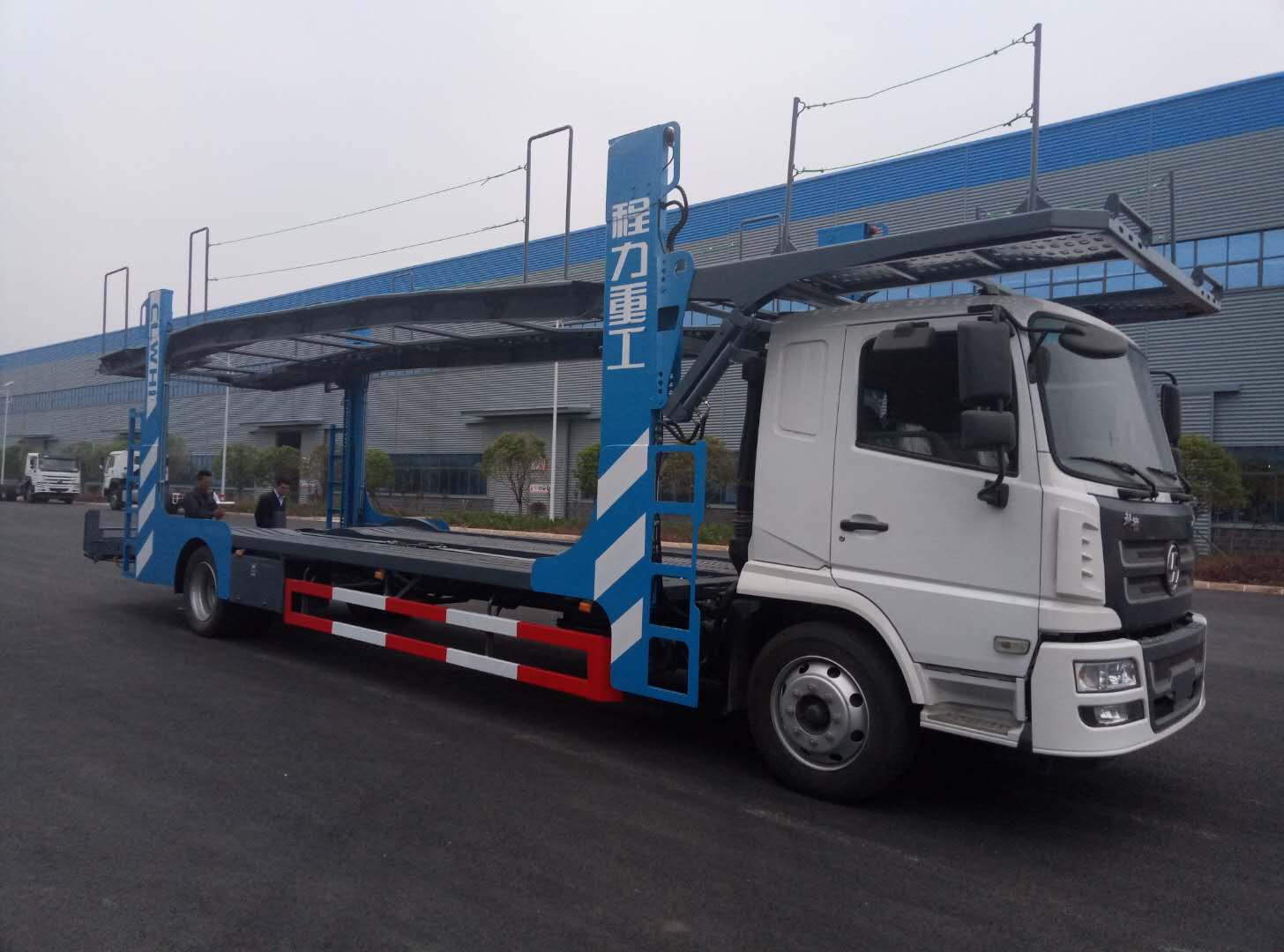 湖北程力陜汽軒德轎車運(yùn)輸車(轎運(yùn)車)詳細(xì)資料 湖北程力專用汽車股份有限公司積極響應(yīng)國家新GB1589-2016法規(guī),融合歐美成熟技術(shù)優(yōu)化開發(fā)的“程力威”牌轎運(yùn)車投放市場(chǎng)。替代老式不合格的單、雙 排轎運(yùn)車。產(chǎn)品特點(diǎn):1、裝載量大,一次性裝載5位4.5米以下轎車,前后分離,前車可獨(dú)立運(yùn)營2、獨(dú)特液壓設(shè)備,液壓缸舉升實(shí)現(xiàn)各裝車平臺(tái)的升降和 定位。3、行駛更安全,符合最新GB1589-2016標(biāo)準(zhǔn),底盤重心低,彎道通過性好,燃油更少。 整車采用優(yōu)質(zhì)武鋼Q235A/Q345B型鋼制作. 湖北程力公司自有生產(chǎn)車間和生產(chǎn)資質(zhì),專業(yè)制造銷售車輛運(yùn)輸式半掛車,6車位8車位中置軸轎運(yùn)車,歡迎來廠參觀洽談。 車型特色: