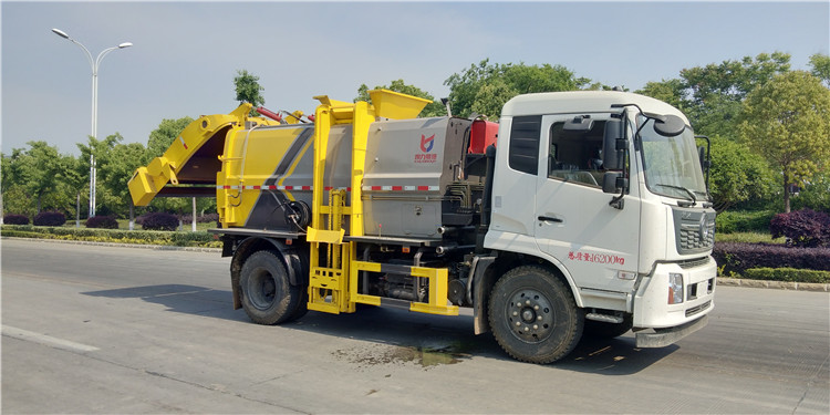 國六東風(fēng)天錦方罐10-12方餐廚垃圾收集車底盤配置:采用東風(fēng)天錦系列新款駕駛室,4700mm軸距,搭載國六(國Ⅵ)康明斯210馬力柴油發(fā)動機(jī),東風(fēng)6檔變速箱,9T后橋,10.00R20鋼絲胎,ABS,標(biāo)配電動窗、中控鎖、鑰匙、日間行車燈、自動落鎖、斷氣剎、定速巡航、瞬時油耗,科技感十足,駕乘更舒適,GB7258新規(guī)。 國六東風(fēng)天錦方罐10方餐廚垃圾收集車上裝配置:罐體容積10方,采用4mm碳鋼制作,圓距形罐體,液壓系統(tǒng),配拉桿式提升機(jī),可掛120/240升垃圾桶,推鏟卸料,具有干濕分離,罐體尾門液壓打開和鎖緊+手動鎖緊裝置,罐尾設(shè)液體自流閥,液位窗,后門液壓開啟。用于運(yùn)輸液態(tài)垃圾,其特點(diǎn)操作簡單,密封性好,無泄漏,無異味,常用于餐館的垃圾轉(zhuǎn)運(yùn)處理。 此款環(huán)衛(wèi)垃圾車可加裝配置:1、罐體內(nèi)部固液分離功能(全推推板,不銹鋼泔水分離網(wǎng)板);2、罐內(nèi)加熱功能(用于嚴(yán)寒地帶防止罐內(nèi)餐飲垃圾凍結(jié)凝固,采用柴油燃燒機(jī)加熱,加熱速度快效果好,可設(shè)置高低溫實(shí)現(xiàn)自動溫控);3、稱重功能(垃圾桶提升架稱重計(jì)量);4、罐體清洗裝置(加裝高壓泵與高壓水槍);5、吸污功能(利用真空吸污裝置直接將餐飲垃圾吸入罐體)