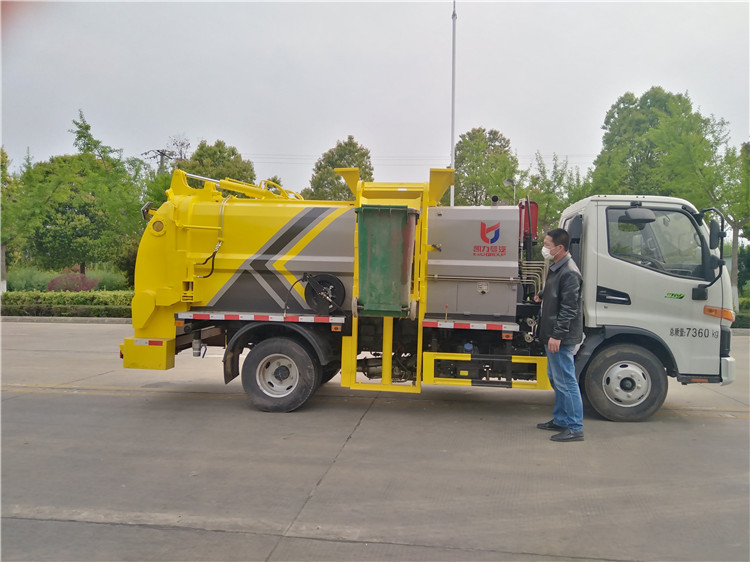 湖北程力國六江淮駿鈴5方餐廚垃圾車(方罐)程力威牌CLW5081TCAH6型餐廚垃圾車 廠家配置: 湖北程力國六江淮駿鈴6方餐廚垃圾車(方罐)底盤配置:江淮駿鈴V6駕駛室2071寬體,3365軸距,云內(nèi)德威163馬力D30TCIF2(120KW),六齒六檔變速箱,動轉(zhuǎn),中控鎖,電動玻璃,多功能方向盤,日間行車燈,空調(diào),斷氣剎,前橋3噸,后橋7.2噸,750R16LT 14PR鋼絲胎。 湖北程力國六江淮駿鈴6方餐廚垃圾車(方罐)改裝標(biāo)配:(1)弧形箱體,箱體材質(zhì)為4mm。(2)合肥皖液油泵,江蘇多路閥,國產(chǎn)液壓油缸。(3)推鏟卸料(不帶舉升功能),具有干濕分離功能。液壓后蓋,后蓋帶密封條。(4)后門液壓鎖緊。(5)拉桿式提升機(jī),掛240L標(biāo)準(zhǔn)塑料垃圾桶。進(jìn)料口蓋液壓開關(guān)。(6)駕駛室內(nèi)集中電控(提升機(jī)外部手動控制),后門鎖緊與后蓋開關(guān)的操作具有防誤操作。(7)箱體帶清洗裝置(液壓馬達(dá)帶動高壓泵、帶水箱) 湖北程力國六江淮駿鈴5方餐廚垃圾車(方罐)程力威牌CLW5081TCAH6型餐廚垃圾車圖片價格: