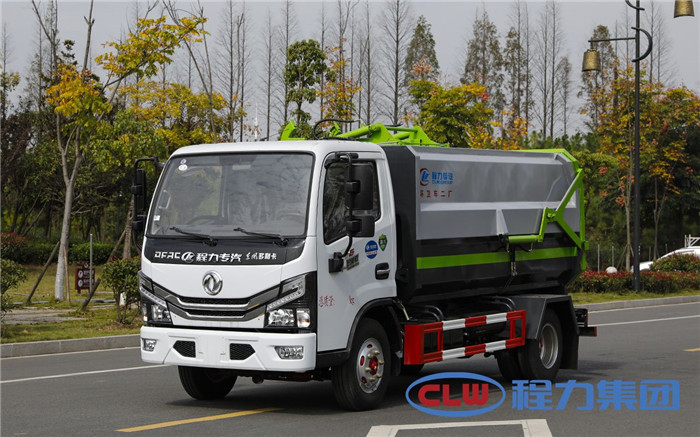 湖北程力國六東風多利卡5方掛桶垃圾車(不帶壓縮)程力威牌CLW5071ZZZD6型自裝卸式垃圾車公告參數: