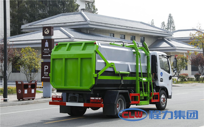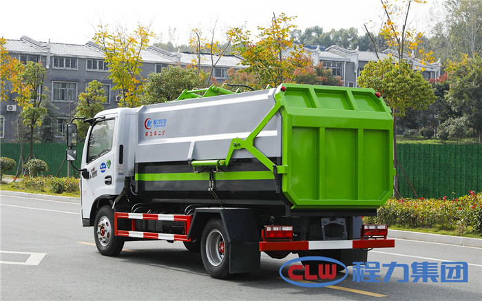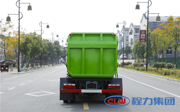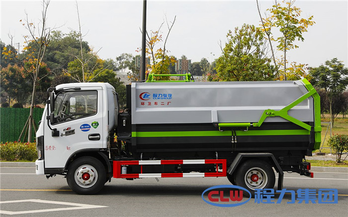 湖北程力國六東風多利卡5方掛桶垃圾車(不帶壓縮)程力威牌CLW5071ZZZD6型自裝卸式垃圾車廠家配置: 底盤配置:東風小多利卡國六5方掛桶垃圾車(不帶壓縮),采用東風原裝底盤,D6系列新款駕駛室,采用東風朝柴升級版CY4BK461國六排放發(fā)動機,95KW,130匹大馬力,萬里揚5擋變速箱,7.00鋼絲胎,國六車輛在國五基礎上增加了DPF顆粒捕捉器,多功能方向盤。 掛桶垃圾車是由密封式垃圾廂、液壓系統(tǒng)、操作系統(tǒng)組成,實現(xiàn)一車與多個垃圾桶聯(lián)合作業(yè),廂體上的液壓提升機裝置可將垃圾桶吊上、放下,上下升降。箱體采用Q235碳鋼板焊接而成,小多利卡、大多利卡為邊3底4mm厚度,3950軸距以上為邊4底5mm厚度,箱體底部油缸舉升自卸,側面提升機可選鏈條式、拉桿式,后門手動開啟加裝手電一體加一千,箱體加厚請電議。 湖北程力國六東風多利卡5方掛桶垃圾車(不帶壓縮)程力威牌CLW5071ZZZD6型自裝卸式垃圾車多方位圖片;
