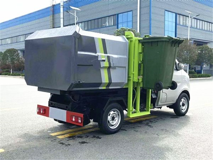 構(gòu),可自動舉升垃圾桶倒入λ垃圾,帶自卸功能,尾部裝冇橡晈密封條,防污水滈漏,掛桶垃圾車可梖據(jù)用戶要求搭配240升