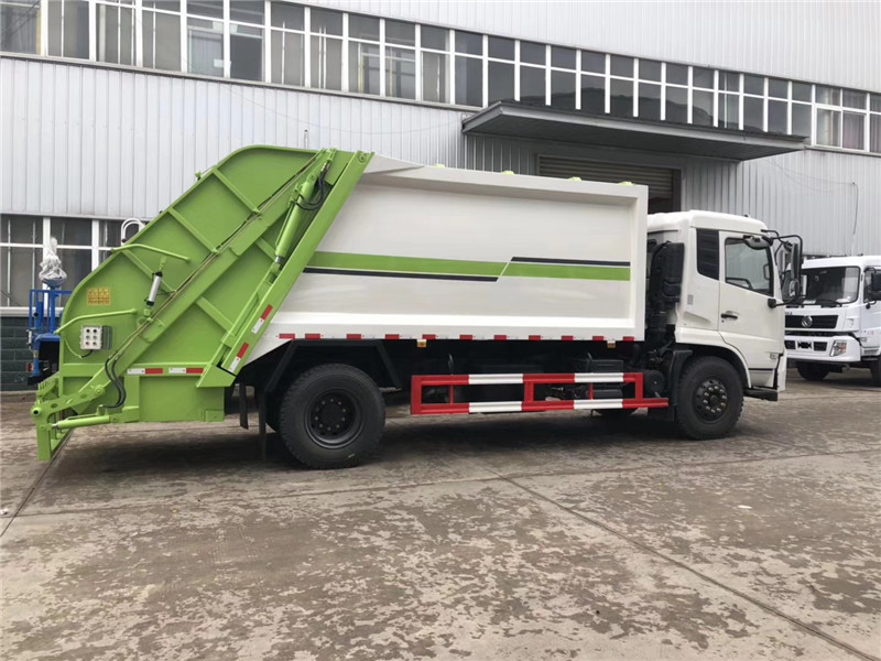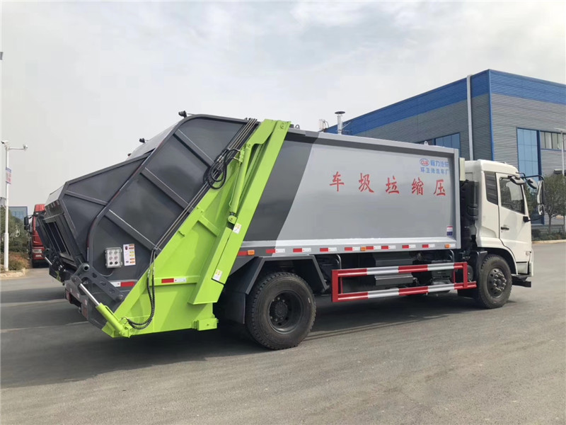 專用部分主要技術(shù)特點(diǎn)及產(chǎn)品描述: 1.垃圾箱:采用加強(qiáng)梁和鋼板焊接而成牢固的框架結(jié)構(gòu),實(shí)際容積最大為12-14立方,外形美觀,重量輕, 受力好,不變形;推鏟由鋼管骨架和折面板構(gòu)成,不僅結(jié)構(gòu)輕巧,又能使垃圾均勻分布,卸料干凈徹底;填裝器主要由填裝器殼體、滑板、刮板等構(gòu)件組成,各構(gòu)件采用受力良好的梁板或箱型結(jié)構(gòu),結(jié)構(gòu)牢固,重量輕;為了提高使用壽命,對箱體進(jìn)行了磷化防銹處理,并噴涂防銹底漆。2.液壓系統(tǒng):利用電控和液壓控制的優(yōu)點(diǎn),通過控制轉(zhuǎn)換,保證了各機(jī)構(gòu)動(dòng)作準(zhǔn)確可靠,提高了使用可靠性和效率;采用了先進(jìn)的液壓舉升安全回路。其原理是在液壓系統(tǒng)中的舉升油缸上設(shè)置了單向平衡閥。該閥隔斷了舉升油缸與液壓膠管的直接連接,即使油管爆裂,填裝器也不會(huì)突然落下造成惡性事故,提高了使用安全性。3.裝卸方式:箱體尾部翻轉(zhuǎn)架帶翻桶(斗)機(jī)構(gòu)裝卸,不會(huì)對操作人員造成污染。4.垃圾箱與填裝器之間采用特制橡膠條密封,密封性好,杜絕了二次污染。 湖北程力汽車國六東風(fēng)天錦12-14方壓縮垃圾車多方位圖片展示:
