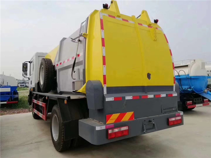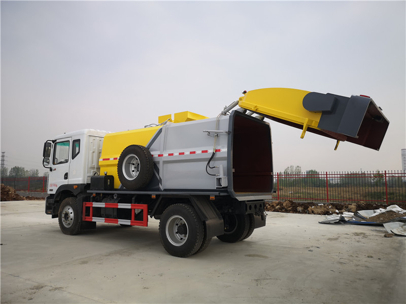 c、罐體容積8.5-10方,罐體帶舉升功能,后門(mén)液壓控制開(kāi)啟關(guān)閉,帶液壓鎖緊功能,拉桿提升機(jī)聯(lián)動(dòng)頂蓋完美設(shè)計(jì),收集時(shí)滴水不漏。提升架可掛 120L/240L 標(biāo)準(zhǔn)塑料垃圾桶