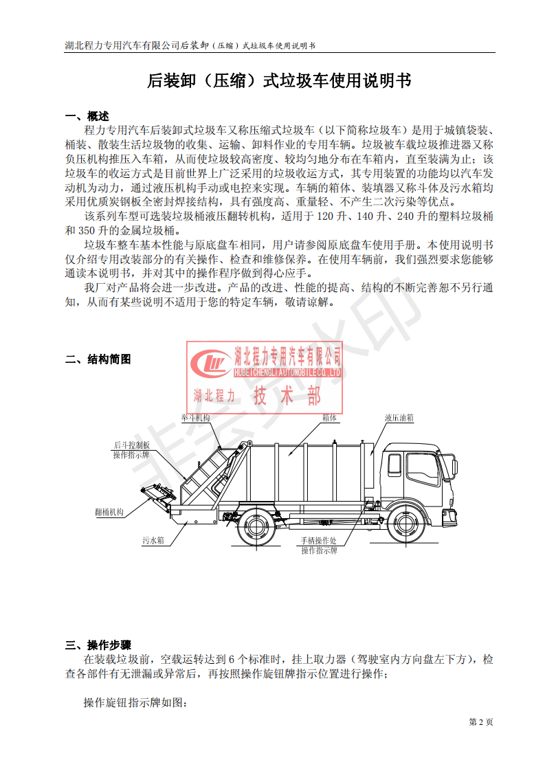 湖北程力壓縮垃圾車如何操作使用說明書