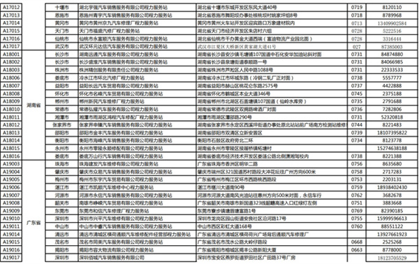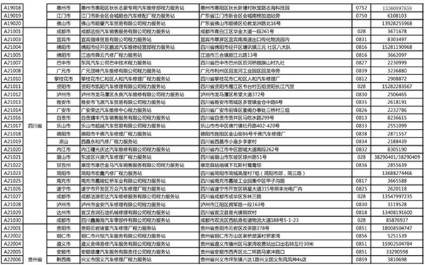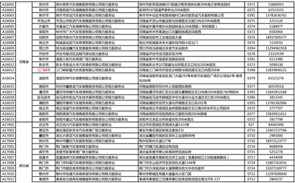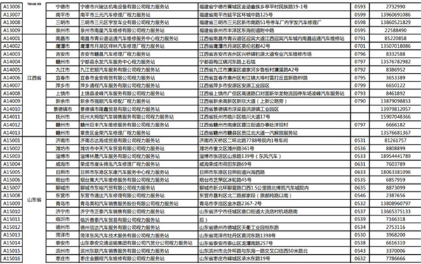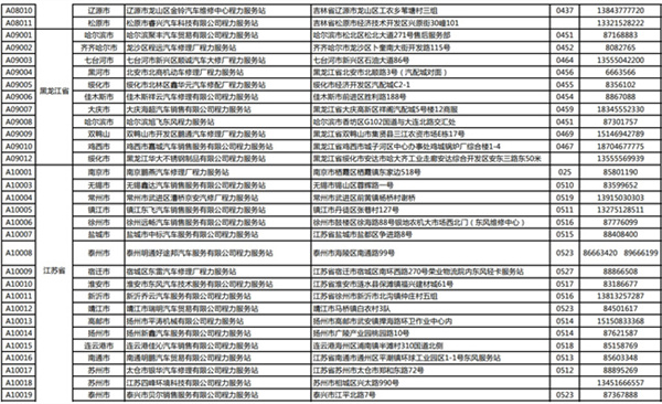 程力專用汽車股份有限公司(程力威)牌專用汽車全國服務(wù)站名錄