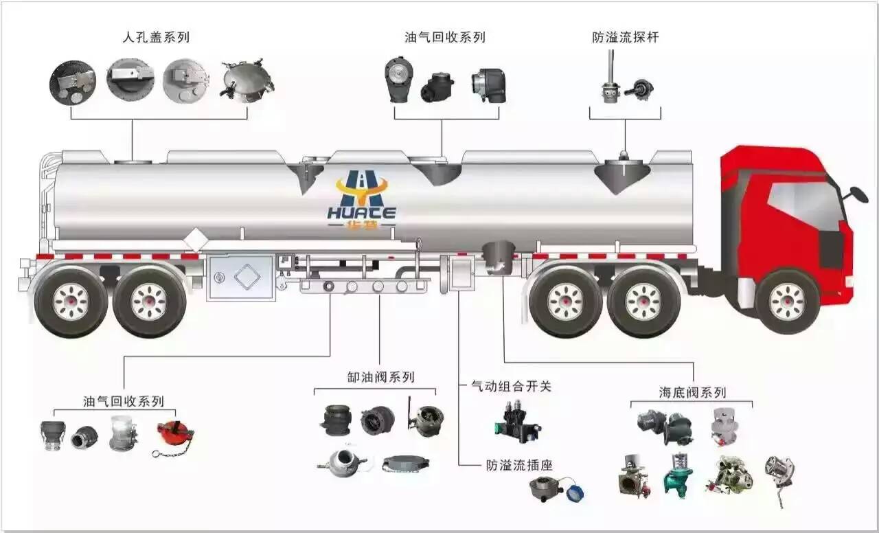 油罐車(chē)歐標(biāo)一套的作用: 油氣回收:油氣回收閥油氣回收閥是將在裝卸油料時(shí)所產(chǎn)生的油氣回收的一種裝置,可以直接安裝在油罐車(chē)頂部罐體上,也可以安裝在人孔蓋上,可以通過(guò)一個(gè)推桿與罐底的海底閥實(shí)現(xiàn)機(jī)械聯(lián)動(dòng)打開(kāi),也可由氣源控制其開(kāi)閉。 油氣回收接頭:油站油氣回收系統(tǒng)由阻火呼吸閥、管道阻火器、三通浮球閥、油氣回收接頭、油氣回收快速接頭等組成,與罐車(chē)油氣回收系統(tǒng)組成一個(gè)封閉的循環(huán)系統(tǒng),有效的將在油站加油過(guò)程中產(chǎn)生的油氣回收再利用,避免了油氣擴(kuò)散。 海底閥海底閥:海底閥海底閥又稱(chēng)緊急切斷閥,安裝于罐體,進(jìn)行下裝加油時(shí)使用,操作簡(jiǎn)便、節(jié)時(shí)、安全環(huán)保。壓力平衡式海底閥用于多倉(cāng)的油罐車(chē),可進(jìn)行不同油倉(cāng)的單獨(dú)裝卸。三通設(shè)計(jì)簡(jiǎn)化管路,減輕負(fù)載,操作簡(jiǎn)單,安全可靠。 下裝閥下裝閥又名卸油閥,安裝于油罐車(chē)側(cè)下方,用于快速卸油。 防溢流探桿用途:防溢電子傳感器廣泛適用于各類(lèi)容器罐在密閉充裝液體時(shí),為防止液體暴滿(mǎn)外泄而提前報(bào)警的一種安全裝置,它安裝在容器罐的頂部人孔蓋上,當(dāng)油位達(dá)到警示限位時(shí),傳感器將自動(dòng)報(bào)警斷閘。 歐標(biāo)罐口蓋又稱(chēng)人孔蓋,安裝于油罐頂部,具有內(nèi)置呼吸和緊急排氣功能,并可在人孔蓋上安裝油氣回收閥、量油孔、防溢流探桿等,在防溢流傳感系統(tǒng)在裝油的過(guò)程中,當(dāng)液面到達(dá)探測(cè)位置時(shí),傳感系統(tǒng)將自動(dòng)報(bào)警,從而停止裝油。內(nèi)置呼吸閥使油罐車(chē)罐體在運(yùn)油過(guò)程中內(nèi)部壓力保持穩(wěn)定,與外部壓力達(dá)到平衡,其傾倒防止溢流的設(shè)計(jì)使油罐車(chē)在發(fā)生意外的情況下保持密封,緊急排氣裝置在罐內(nèi)壓力急劇升高的情況下,將自動(dòng)打開(kāi),釋放罐內(nèi)壓力,從而防止事故的發(fā)生,大大提高運(yùn)油的安全性。 |