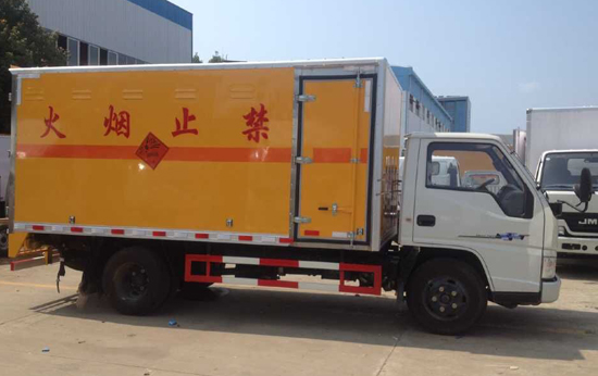 專用功能說明: 1、爆破器材運輸車底盤的型號可分為:東風(fēng)、江鈴、江淮、奧鈴、時代、歐曼、慶鈴、解放等。驅(qū)動形式可分為:雙驅(qū)動和四驅(qū)動,按額定載質(zhì)量有0.5噸—9.9噸(國防科工委要求最大上戶噸位不超過10噸)。 2、廂體分為兩部分:A:運輸炸藥;B:運輸雷管(抗暴容器);C:炸藥,雷管同時運輸(廂體必須隔倉,分倉運輸,加裝抗爆容器)。廂體為雙層金屬骨架結(jié)構(gòu),外部為冷扎鋼板,內(nèi)壁采用鋁合金板蒙面,夾層為隔熱阻燃材料填充。設(shè)置對開門,如需安裝抗暴容器則增開側(cè)門,側(cè)壁設(shè)有防雨功能自然通風(fēng)窗口,以使廂內(nèi)外空氣流動,廂體內(nèi)部做防靜電處理,廂體底部與廂內(nèi)前部鋪有阻燃導(dǎo)靜電膠板,并與底盤等電位連接,通過車輛后端的導(dǎo)靜電裝置與大地相連,可防止靜電火花的產(chǎn)生和車輛靜電及時釋放,提高爆破器材運輸車的安全性。廂體內(nèi)部前面和側(cè)面裝有固定拉環(huán),與捆綁帶使用捆綁貨物以避免移動,保證安全。 3、 感煙報警器:是感測車廂內(nèi)火情的專用裝置,安裝在車廂內(nèi)頂部,并與駕駛室內(nèi)報警裝置連接,當(dāng)有火情煙霧出現(xiàn),在駕駛室進行蜂鳴報警通知駕駛員,保證及時消除險情。 4、防盜報警器:為了保證安全,在車廂后方和側(cè)面開設(shè)有門,在各門器框上方安裝有門磁開關(guān)報警器(根據(jù)用戶要求選裝防盜監(jiān)視器。行車記錄儀等)當(dāng)廂門被打開時,駕駛室內(nèi)的蜂鳴器發(fā)出報警聲音,不使用時可將駕駛室內(nèi)的控制開關(guān)關(guān)閉?杀WC在行駛過程中,整車始終處于受控狀態(tài)。 5、整車發(fā)動機排氣裝置采用前置式,并安裝有排氣火花熄滅器(防火罩),防止熱源對爆炸物產(chǎn)生不良影響。 6、底盤上裝有兩條拖地導(dǎo)靜電膠帶,廂體外側(cè)安裝示廓標(biāo)記燈以及手提滅火器等安全裝置。 7、車身顏色為黃色,并有“嚴(yán)禁煙火”和“爆”字樣,貼有反光標(biāo)識。 |