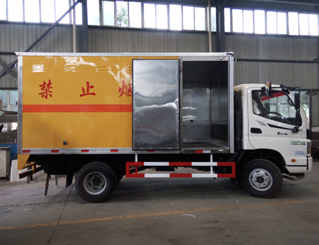 目前炸藥運輸車,雷管運輸車,防爆車,以及煙花爆竹運輸車都歸為爆破器材運輸車,這并且類車輛都具有廂體強度高、防火阻燃、防雨、防止靜電火花、煙火報警和防盜報警等主要功能,現(xiàn)在的爆破器材運輸車已經(jīng)脫離原來的平板運輸,而改為廂式運輸 ,所以本次介紹的爆破器材運輸車都為廂式運輸。