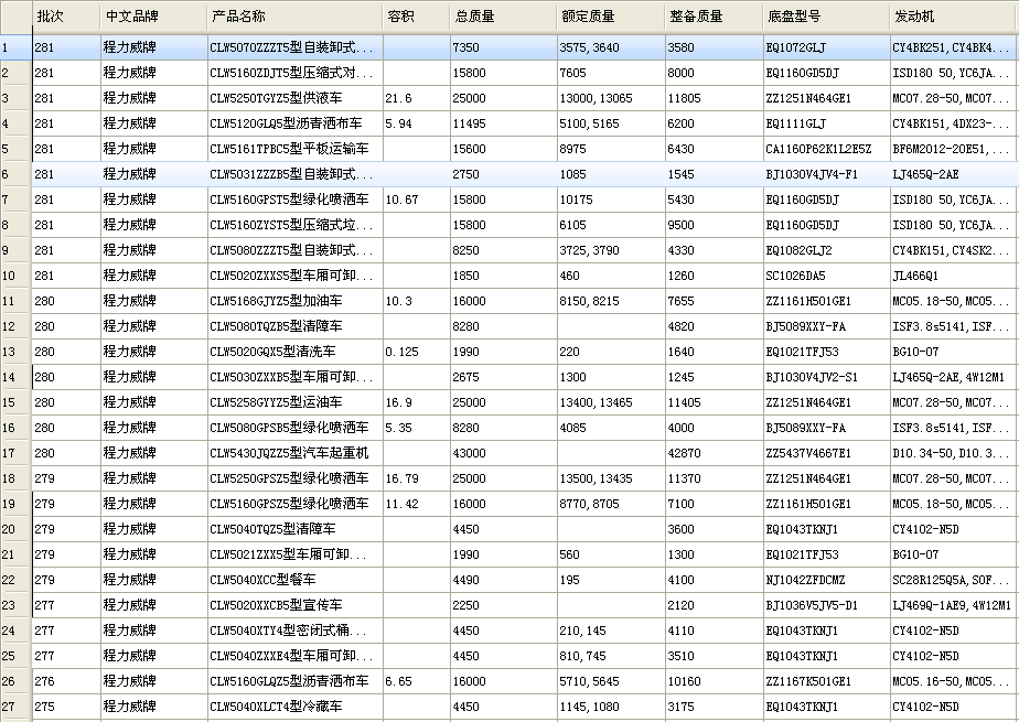 2016年是實現(xiàn)“十三五”規(guī)劃開局之年,又適逢環(huán)保部實施國五排放升級,為適應(yīng)市場需要,程力公司在282批新上公告56個,283批又跟進了56個公告,2批公告總量達到112個,其中國五車型102個,新能源車型9個。車型覆蓋綠化噴灑車、壓縮式垃圾車、高空作業(yè)車、吸糞車、車廂可卸式垃圾車、自裝卸式垃圾車、掃路車、吸污車、壓縮式對接垃圾車、清洗吸污車、洗掃車、清洗車、運油車、鋁合金運油車、腐蝕性物品罐式運輸車、鮮奶運輸車、粉粒物料運輸車、供液車、冷藏車、散裝飼料運輸車、清障車、舞臺車、售貨車、同步碎石封層車、平板運輸車、純電動車輛等,可謂是新品大盤點。以上車型中,不僅有傳統(tǒng)車型,也不泛為適應(yīng)市場新形勢而開發(fā)的智能型車。 下面是湖北程力國五車輛一些公告