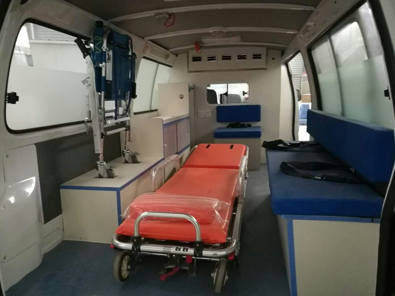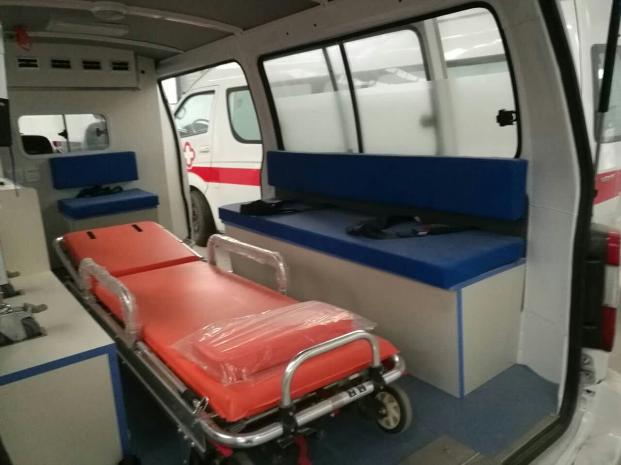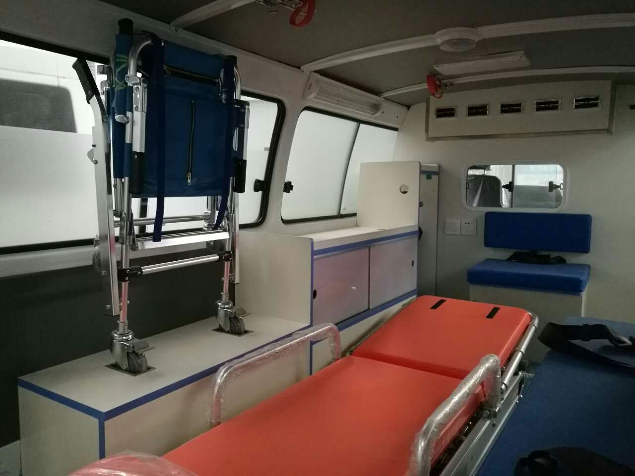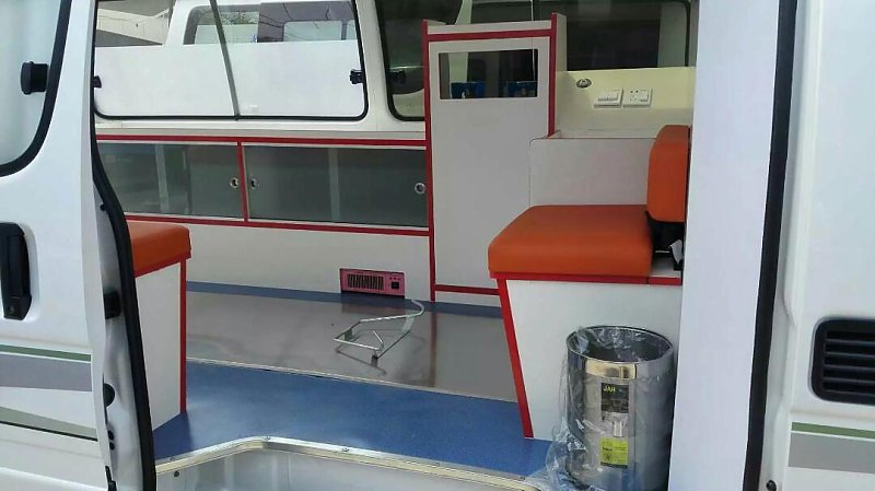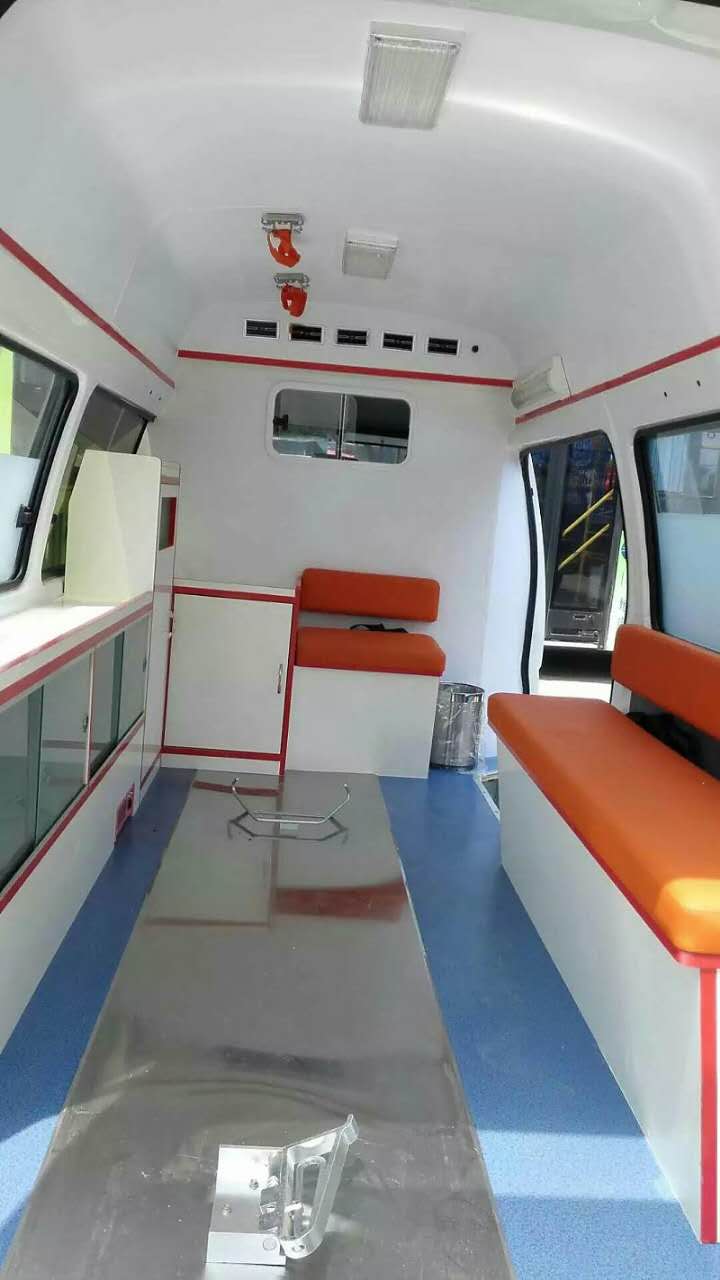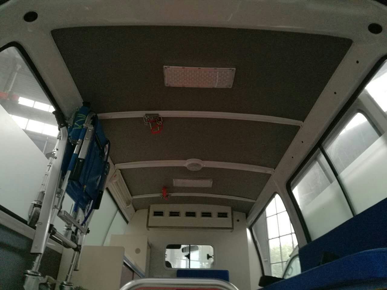 1、便攜折疊式擔(dān)架1件;2、醫(yī)藥柜1件;3、固定安裝氧氣瓶1只;4、輸液吊鉤2只;5、消毒燈1只;6、污物桶1只;7、單人座椅3只;8、長條貯藏柜帶2人位軟座墊、軟靠背和安全帶1套;9、中隔斷帶鋁合金滑窗1套;10、前頂裝全藍警燈警報器1套;11、照明燈2只;12、逆變器1只;13、電源插座1組;14、中門上車扶手;15、后門上車踏板;16、醫(yī)用耐磨塑膠地板革;17、貼救護十字標志;廠家銷售熱線:13872882215.