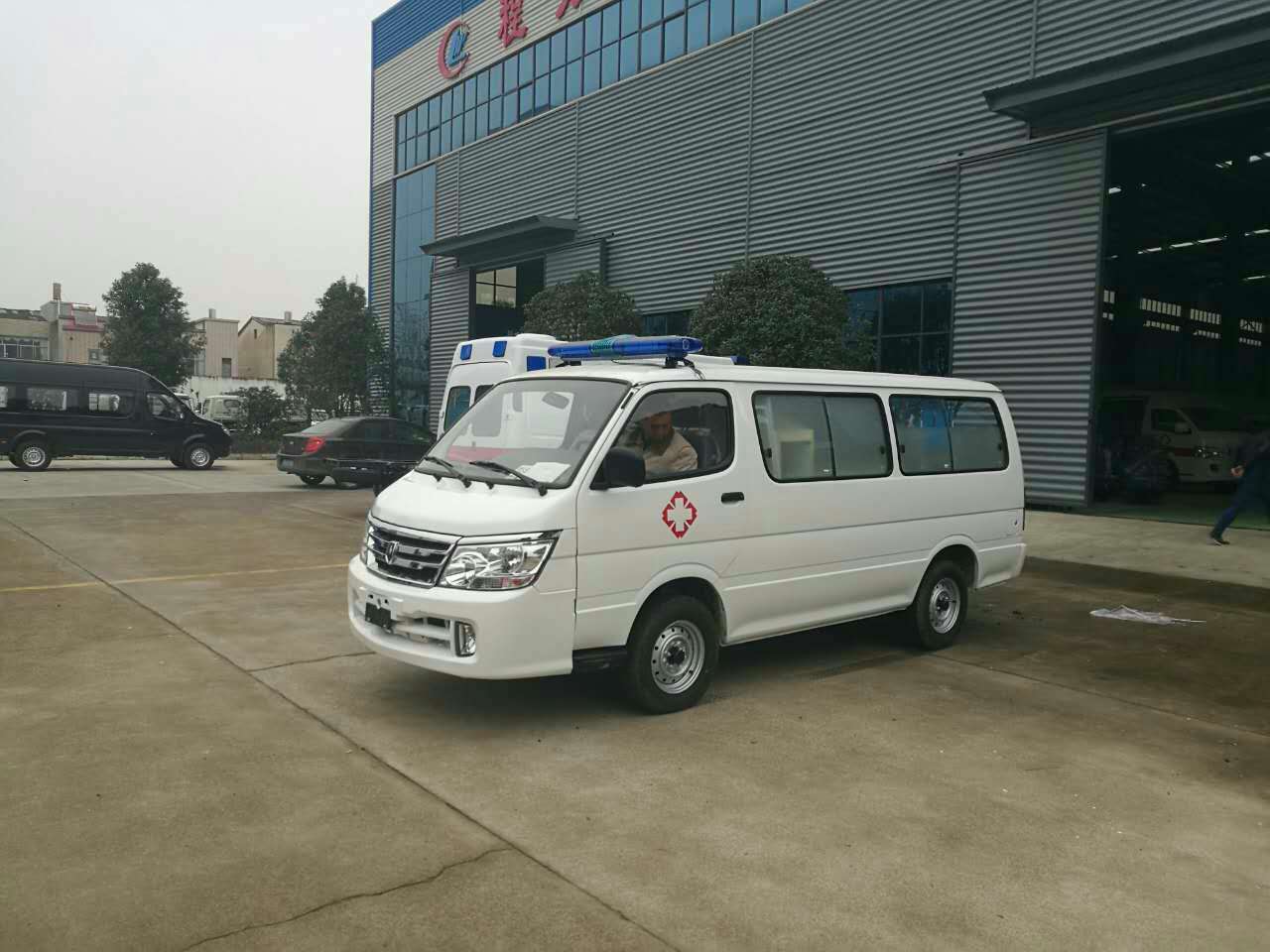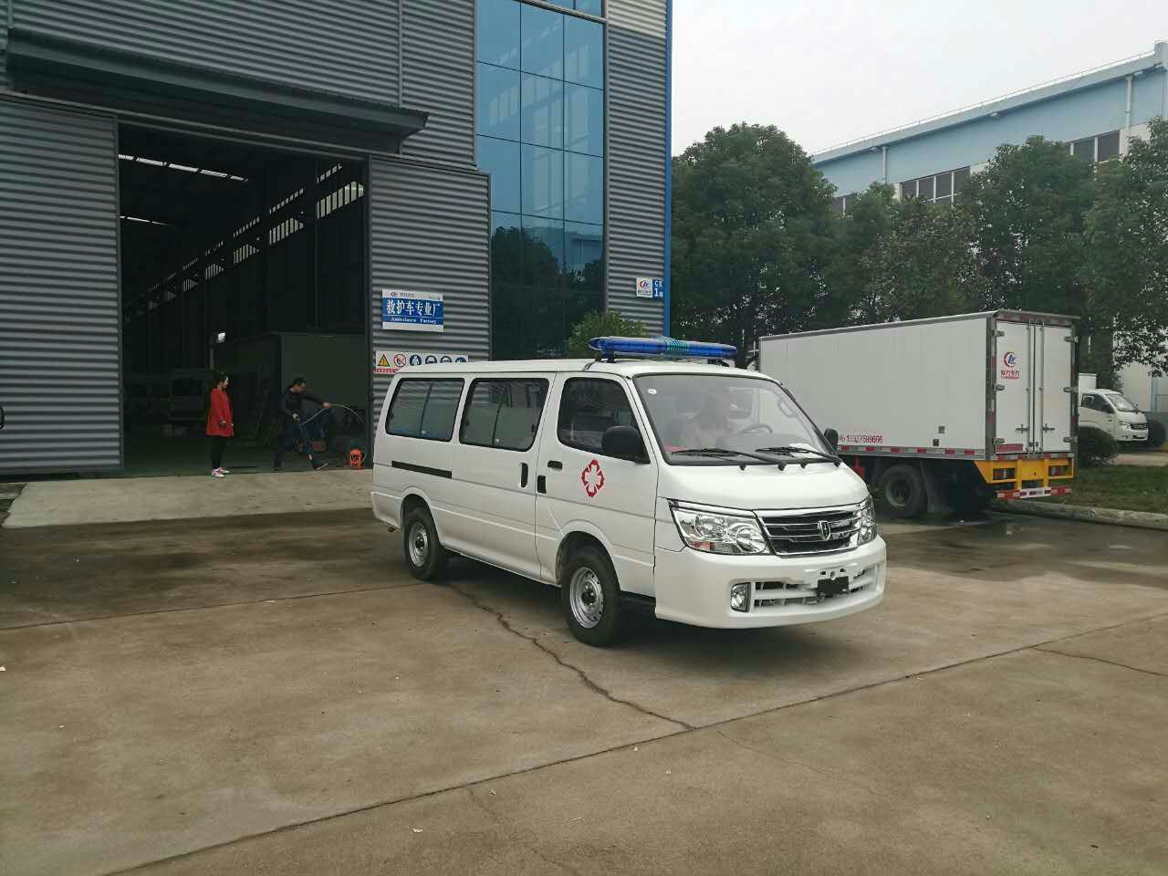 國5救護車(金杯轉(zhuǎn)運型救護車)SY5033XJH-D3S1BH(國五汽油機),功率:73.5kW,軸距:2590mm,輪胎型號:185R14,發(fā)動機型號:4G19,排量:2.0,帶前后空調(diào),電動門窗,方向助力,后醫(yī)療艙配置(自動上車擔(dān)架,氧氣瓶5L,耐減,防滑,)