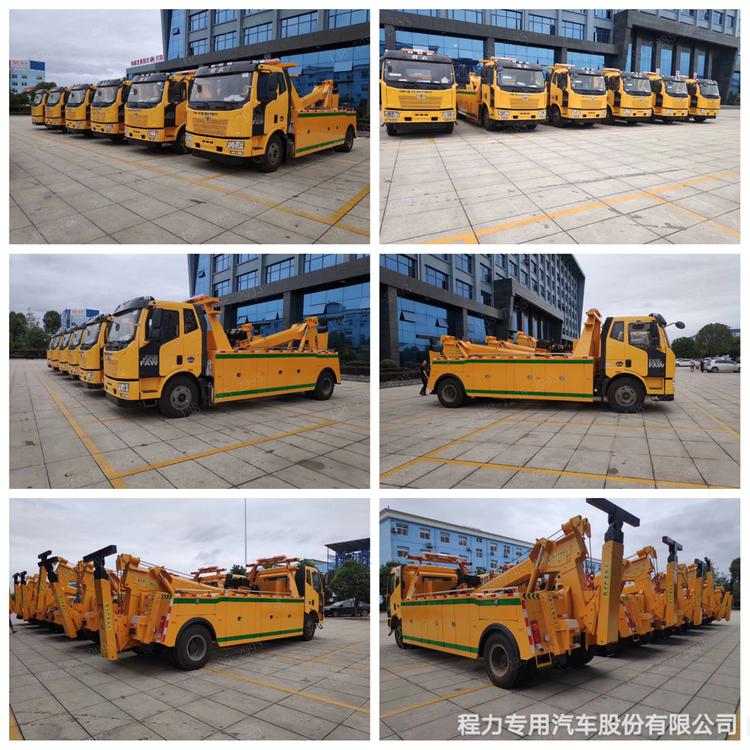 湖北程力國六解放J6托吊連體清障車程力威牌CLW5180TQZC6型清障車廠家配置: 湖北程力國六解放J6托吊連體清障車底盤配置:解放J6平頭排半豪華駕駛室,可選大柴220馬力或240馬力發(fā)動機,6檔變速箱,280雙層車架,加厚高強度前保險杠,前霧燈,可調(diào)水晶大燈,廣角后視鏡,前路面視鏡,10.00R20原鋼絲胎,原廠空調(diào),ABS。 湖北程力國六解放J6托吊連體清障車專用配置:可選8T16D上裝或10T16D聯(lián)體式上裝,進口閥,二節(jié)式六邊型吊臂,三節(jié)托臂,分體式車廂,雙側(cè)聯(lián)動操作裝置,兩個8噸液壓卷揚,35米鋼絲繩,,直徑16mm,配四套鋼叉,一套拖叉套,一套鋼板吊耳拖叉,一套抱胎裝置,一個長排工程警燈,輔助燈一套,輔助氣管總成一套。 湖北程力國六解放J6托吊連體清障車程力威牌CLW5180TQZC6型清障車圖片價格: