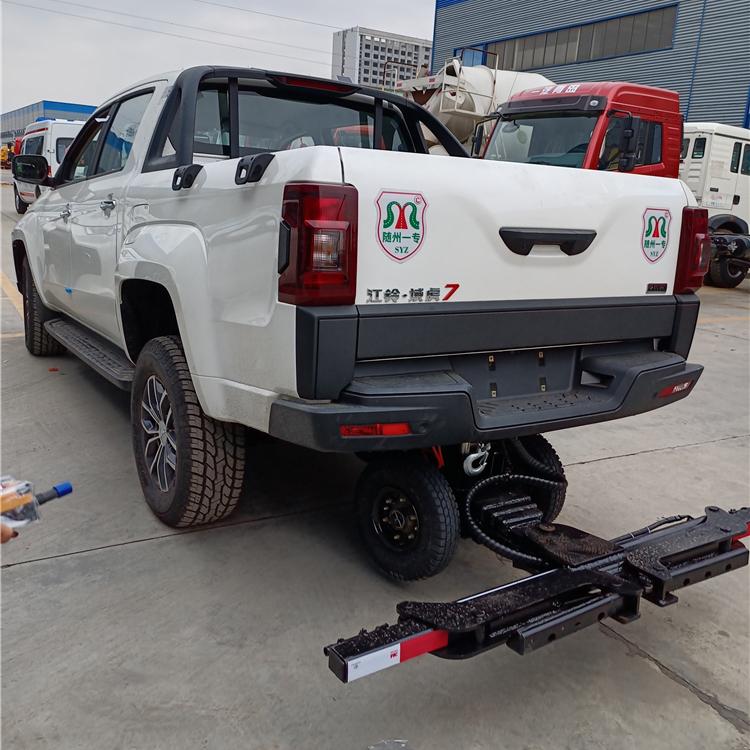 湖北程力國六江鈴域虎7皮卡清障車四驅(qū)皮卡拖車程力牌CL5030TQZ6ZK型清障車廠家配置: 地庫救援皮卡清障車,此款車型有公告,可正常上戶。該車采用江鈴域虎皮卡底盤改裝,全自動(dòng)夾緊裝置,因?yàn)檐嚿矶、高度低,特別適合地下車庫的車輛救援。 江鈴域虎7皮卡手動(dòng)擋皮卡清障車配置:選用國六域虎7皮卡底盤,國六B級排放標(biāo)準(zhǔn)福特發(fā)動(dòng)機(jī)141馬力,6擋變速箱,中冷增壓柴油發(fā)動(dòng)機(jī),分時(shí)高低速四驅(qū),3085軸距,冷暖空調(diào),真皮座椅,原廠倒車影響,ABS,265,70R16真空越野胎,多功能方向盤,電動(dòng)玻璃遙控一鍵啟動(dòng)功能。前后碟剎,鋁合金輪轂,腳踏板2.0T排量,貨箱噴涂。 江鈴域虎7皮卡手動(dòng)擋皮卡清障車上裝配我廠最新款 第五代專利 產(chǎn)品萬向輔助輪,配無線遙控器真正的全自動(dòng)抱胎,備用線按鈕,鋼板加強(qiáng),3噸電動(dòng)液壓單元,雙油缸托3節(jié)伸縮托臂,進(jìn)口部件,進(jìn)口油封,全自動(dòng)抱胎,贈(zèng)萬向輔助小車2個(gè),4條綁帶,贈(zèng)送前配重。 第五代上裝~帶萬向輔助輪后托臂,依據(jù)力學(xué)原理,優(yōu)化設(shè)計(jì),根據(jù)拖車的重量遙控調(diào)節(jié)輔助輪的相應(yīng)高度,車速輕松跑;規(guī)避了已經(jīng)淘汰的第三代國定輔助輪拖臂因不能調(diào)節(jié)摩擦力大速度受限帶來的一系列問題(限速、費(fèi)油、摩擦大引起的爆胎。 湖北程力國六江鈴域虎7皮卡清障車四驅(qū)皮卡拖車程力牌CL5030TQZ6ZK型清障車圖片價(jià)格: