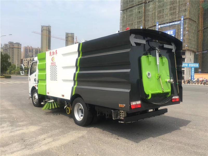 湖北程力國六東風多利卡(福瑞卡)洗掃車CLW5120TXS6型洗掃車功能介紹 東風多利卡洗掃車采用洗,掃,吸,混合的方式收集垃圾,濕式除塵、電液PLC一鍵控制,液壓傾翻卸料的作業(yè)方式對路面進行清掃作業(yè)。 采用副發(fā)動機專門驅(qū)動風機和液壓系統(tǒng),保證行駛過程中能繼續(xù)工作,保證清掃過程的連續(xù)性。 采用“中置兩掃盤 +噴霧降塵+中置寬幅吸嘴(內(nèi)置高壓噴桿及兩側(cè)高壓噴桿)”的結(jié)構(gòu)布局,對泥濘路面有更好的清潔效果,清掃過程中砂石不在飛濺揚塵,此布局便于清掃裝置與吸盤的調(diào)整與維護,轉(zhuǎn)場作業(yè)時整車通過性好。 副發(fā)動機與風機之間的傳動設置設有自動離合器,可保證副發(fā)動機空載啟動和停機時與風機的自動脫離,降低了對副發(fā)動機的沖擊,提高了副發(fā)動機的工作可靠性和使用壽命。 掃盤有遇障礙自動避讓保護功能和自動復位功能,遇到障礙自動回縮,越過障礙自動回位。 掃盤轉(zhuǎn)速可根據(jù)各種不同的清掃工況來調(diào)整轉(zhuǎn)速,能保證在各種污染狀況下都有良好的清掃效果 采用先進,高效的專用風機和可隨路面自動找平的全浮動式吸嘴,清掃效果好,使用壽命長。 湖北程力國六東風多利卡(福瑞卡)洗掃車主要配置性能參數(shù)簡介 項 目 | 主要性能參數(shù) | 車 型 | 東風多利卡 | 整車型號 | CLW5120TXS6型洗掃車 | 底盤型號、類別、生產(chǎn)企業(yè) | CLW5120TXS6二類 東風汽車股份有限公司 | 排放標準 | GB3847-2005,GB17691-2018國Ⅵ | 發(fā) 動 機 | 主機 | 底盤發(fā)動機型號及生產(chǎn)企業(yè) | D25TCIF1 昆明云內(nèi)動力股份有限公司 | 功率(kw) | 110 | 馬力(ps) | 150 | 排量(ml) | 2499 | 副機 | 清掃發(fā)動機型號及生產(chǎn)企業(yè) | B140東風康明斯股份有限公司 | 功率(kw) | 102 | 馬力(ps) | 140 | 排量(ml) | 3200 | 燃油種類 | 0號輕柴油(與底盤共用柴油箱) | 車輛 基本 參數(shù) | 外形尺寸(長X寬X高)mm | 7000*2200*2700 | 軸距(mm) | 3800 | 輪胎 | 245/70R19.5,8.25R20 | 輪胎數(shù)量 | 7(含1備胎) | 輪距 | 前輪(mm) | 1745 | 后輪(mm) | 1630 | 額定乘員 | 3人 | 前懸/后懸(mm) | 1130/2070 | 接近角 | 21° | 離去角 | 11° | 離地高度(mm) | 320 | 額定載質(zhì)量(kg) | 4355 | 整備質(zhì)量(kg) | 7445 | 最大總質(zhì)量(kg) | 11995 |
