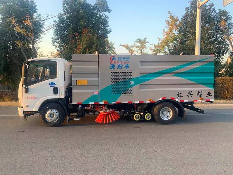 KV100P/KV600底盤(pán)配700P駕駛室:120馬力國(guó)六五十鈴4KH1CN6LB發(fā)動(dòng)機(jī)配五十鈴5檔變速器,或132馬力國(guó)六4KH1CN6HB發(fā)動(dòng)機(jī)配五十鈴6檔變速器,帶空調(diào),方向助力,多功能液晶儀表盤(pán),前橋3噸,后橋5噸,帶ABS,斷氣剎(或者油剎),駕駛室可翻轉(zhuǎn),700副梁車型標(biāo)配700R16輪胎車架幅高176MM,800副梁車型標(biāo)配750R16輪胎車架幅高216MM。 湖北程力國(guó)六五十鈴8方洗掃車慶鈴五十鈴洗掃車配置: 1、帶2個(gè)中置掃盤(pán);中置超寬吸嘴;江鈴64kW增壓副發(fā)動(dòng)機(jī);臺(tái)灣液壓閥;大力馬達(dá);德國(guó)高壓水泵;威龍低壓泵;3mm不銹鋼垃圾箱;不銹鋼水箱;德國(guó)控制器;尾部箭頭燈;機(jī)油、垃圾箱、水箱均帶防溢或低位報(bào)警裝置;倒車及洗掃狀態(tài)室內(nèi)監(jiān)視器;多種語(yǔ)音提示;防傾倒垃圾翻車保護(hù)、檢修安全保護(hù);20m高壓沖洗卷盤(pán);刷臂轉(zhuǎn)動(dòng)機(jī)構(gòu)使用德國(guó)進(jìn)口高新耐磨工程隔套,免打黃油;精密冷彎無(wú)縫液壓油管;CAN總線運(yùn)動(dòng)控制器一鍵電腦控制。 2、洗掃寬度3.2m;吸入粒度φ110mm。 多功能洗掃車具有路面清洗、路面清掃、路緣清洗、路緣和路緣石立面洗刷、低壓沖刷、噴霧除塵等多功能。有“全洗掃”、“左洗掃”、 “右洗掃”、 “全掃”、 “左掃”、 “右掃”等多種作業(yè)方式可選擇。選擇“全洗掃”方式清洗廣場(chǎng)和路面,清洗效率高作用好,洗凈率達(dá)90%以上。選擇“左洗掃”或“右洗掃”方式清洗路面和路緣、洗刷路緣石立面。需求進(jìn)行路面清掃或路面保潔作業(yè)時(shí),可選擇掃路方式。需求噴霧除塵時(shí),可敞開(kāi)噴霧設(shè)備,進(jìn)行噴霧除塵作業(yè)?梢韵駷⑺囅嗤瑢(duì)路面進(jìn)行低壓沖刷作業(yè)。 湖北程力國(guó)六五十鈴8方洗掃車多方位圖片: 湖北程力國(guó)六五十鈴8方洗掃車多功能洗掃車適用于城市道路、高速公路、廣場(chǎng)、機(jī)場(chǎng)、碼頭、遂道、橋梁、隔絕墻面、路緣和路緣石立面的機(jī)械化清洗、清掃、噴霧降塵等清潔作業(yè)。
