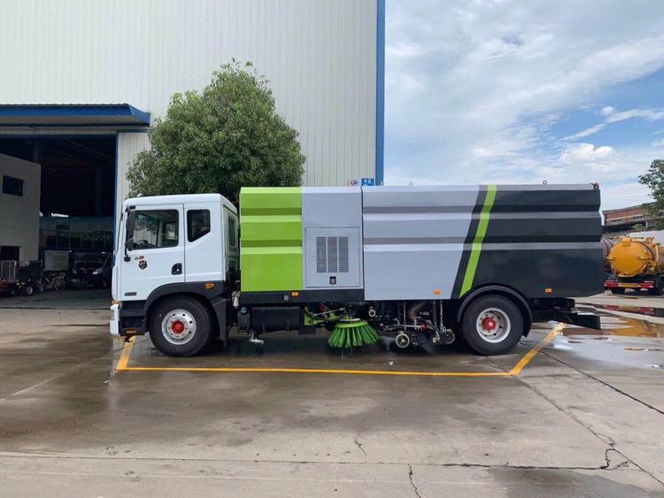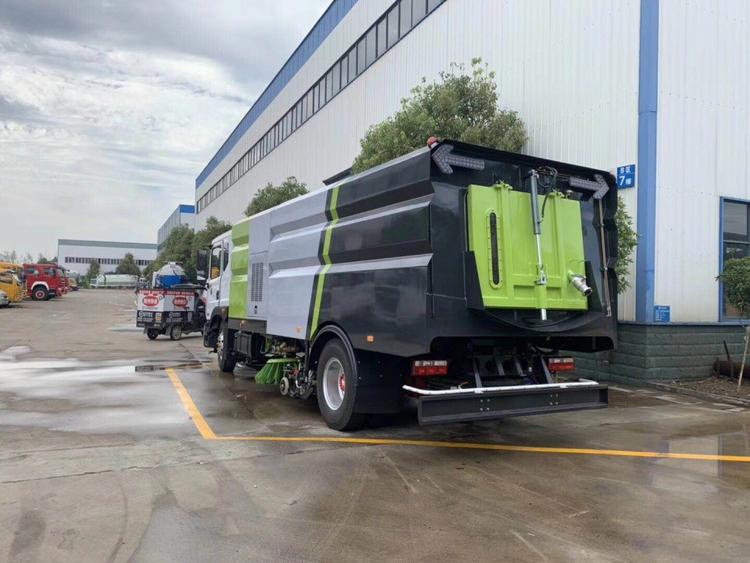 湖北程力東風D9洗掃車(國六) 底盤配置: 采用東風D9系列新款駕駛室,3950mm軸距,搭載國六(國VI)玉柴200馬力柴油發(fā)動機/康明斯210匹馬力柴油發(fā)動機,6檔變速箱,9T后橋,295真空胎,方向助力、斷氣剎、電動窗、中控鎖、ABS,原裝空調(diào),GB7258新規(guī)。 湖北程力東風D9洗掃車(國六)上裝配置: 帶2個中置掃盤;中置超寬吸嘴;雙層吸塵筒; 康明斯170馬力副發(fā)動機;臺灣液壓閥;大力馬達;德國高壓水泵 (前沖/側(cè)噴/中噴/后噴霧)/側(cè)沖洗水槍/垃圾箱自潔裝置); 萬向高壓路沿清洗;威龍低壓泵(前沖),氣動球閥控制; 4mm不銹鋼垃圾箱;不銹鋼水箱;德國控制器;尾部箭頭燈; 機油、垃圾箱、水箱均帶防溢或低位報警裝置;倒車及洗掃狀態(tài)室內(nèi)監(jiān)視器; 多種語音提示;倒車自動保護、防傾倒垃圾翻車保護、檢修安全保護; 20m高壓沖洗卷盤;刷臂轉(zhuǎn)動機構(gòu)使用德國進口高新耐磨工程隔套,免打黃油; 冷彎無縫液壓油管;運動控制器一鍵電腦控制。洗掃寬度3.5m;吸入粒度p110mm。 湖北程力東風D9洗掃車(國六)多方位圖片: