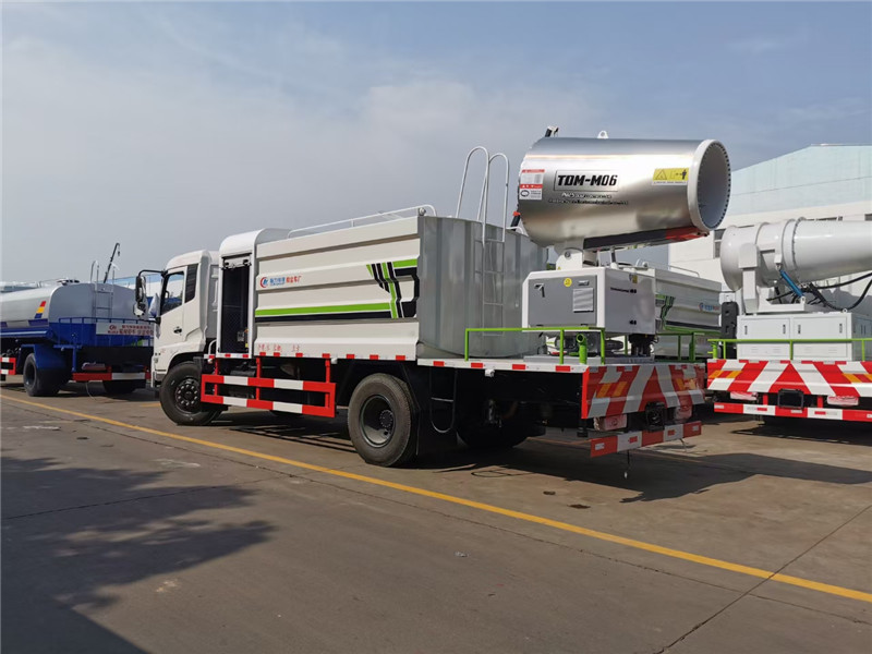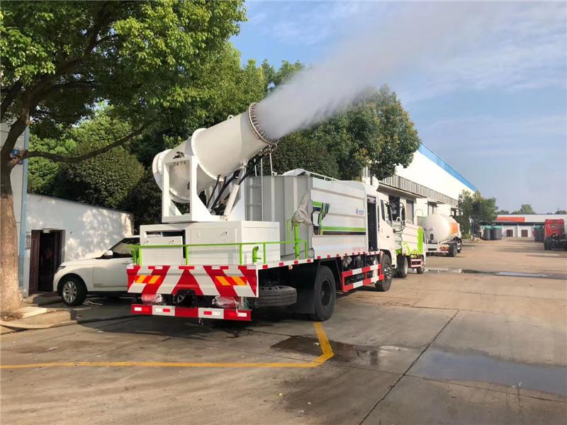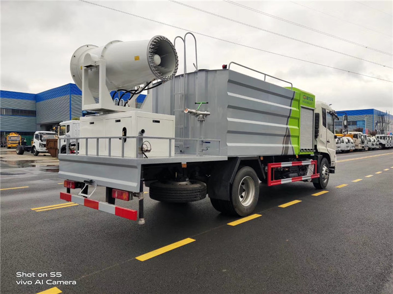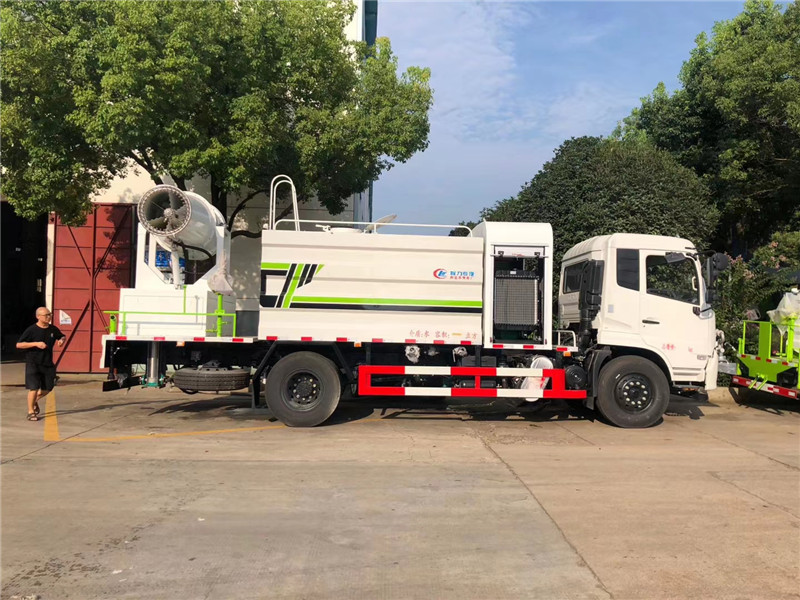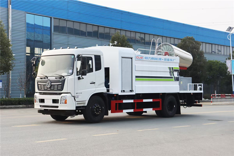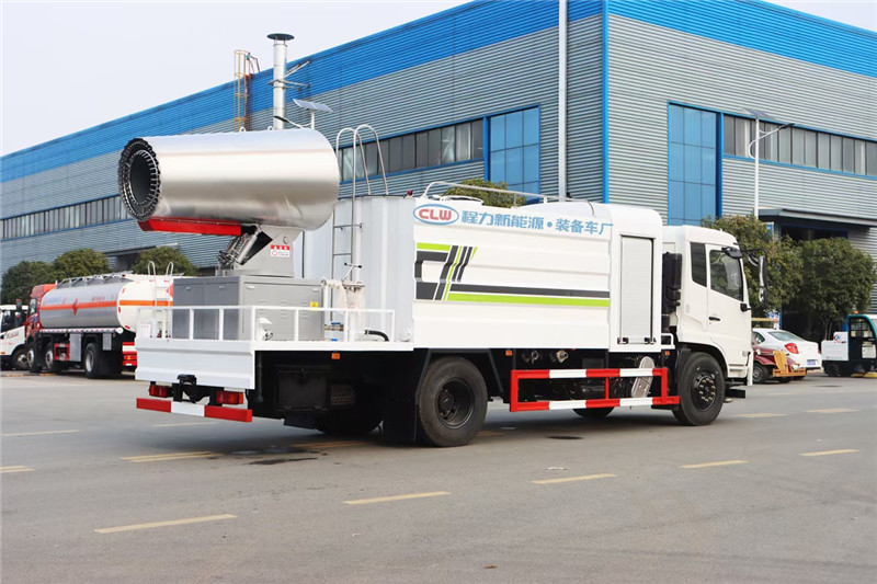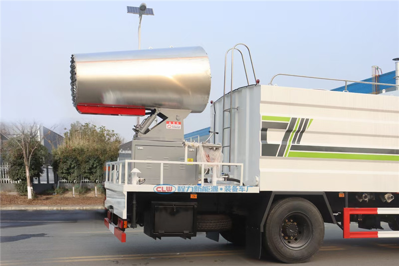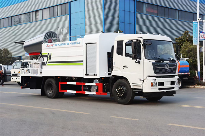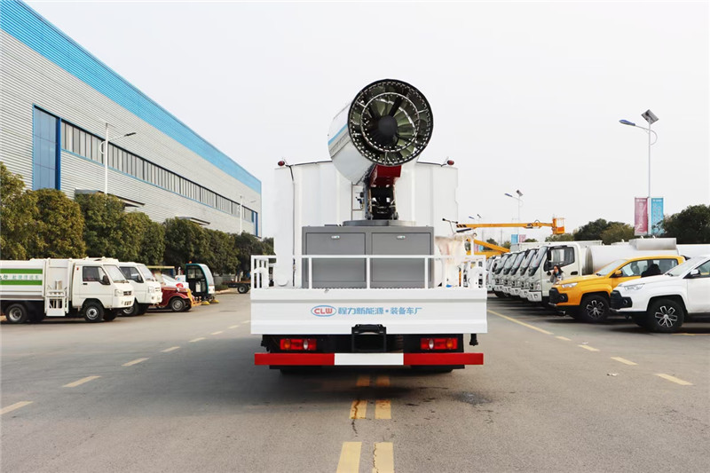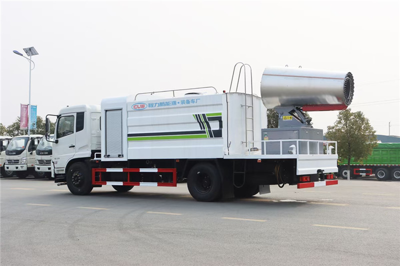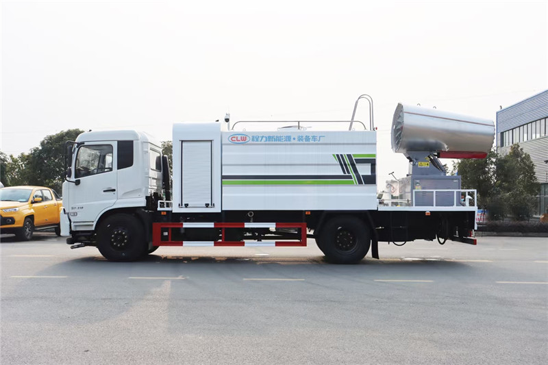 湖北程力國(guó)六東風(fēng)天錦60-100米抑塵車(chē)(方罐)程力威牌CLW5181TDYD6型多功能抑塵車(chē)廠家配置: 湖北程力國(guó)六東風(fēng)天錦抑塵車(chē)底盤(pán)配置:底盤(pán)采用東風(fēng)天錦國(guó)六底盤(pán),公告型號(hào):CLW5181TDYD6,康明斯6缸ISB210馬力發(fā)動(dòng)機(jī),4700軸距,275真空胎,6檔變速箱,原裝空調(diào),ABS。 湖北程力國(guó)六東風(fēng)天錦抑塵車(chē)上裝配置:罐體容積11.3立方,罐體為方形罐,罐體內(nèi)部做防腐,罐體鋼板采用Q235碳鋼鋼材,整車(chē)具備灑水車(chē)的一切功能(前沖、后灑、側(cè)噴、平臺(tái)高炮),氣動(dòng)球閥控制灑水功能,水位報(bào)警器,標(biāo)配億豐60/90水泵,自流閥及消防接頭各1個(gè)、水管2根。后平臺(tái)安裝一臺(tái)60米霧炮。 湖北程力國(guó)六東風(fēng)天錦抑塵車(chē)霧炮參數(shù):CLW-100型60米,副發(fā)電機(jī)組功率50(Kw),風(fēng)機(jī)功率15(Kw),不銹鋼多級(jí)離心泵功率5.5(Kw)。100米無(wú)線遙控操作,霧化距離60米(靜風(fēng)室內(nèi)距離)實(shí)際射程:(霧化射程會(huì)受濕度、溫度、風(fēng)速等各方面天氣因素的影響,另外天氣干燥地區(qū)一部分在空中被蒸發(fā)掉)。 | 湖北程力國(guó)六東風(fēng)天錦60-100米抑塵車(chē)(方罐)程力威牌CLW5181TDYD6型多功能抑塵車(chē)圖片價(jià)格: